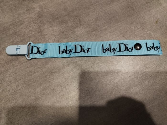Attache tétine faisant 22cm. Elle peut passer au lave linge ou peut se mettre à trempé car il n'y a aucune partie métallique dedans. Jamais utilisée