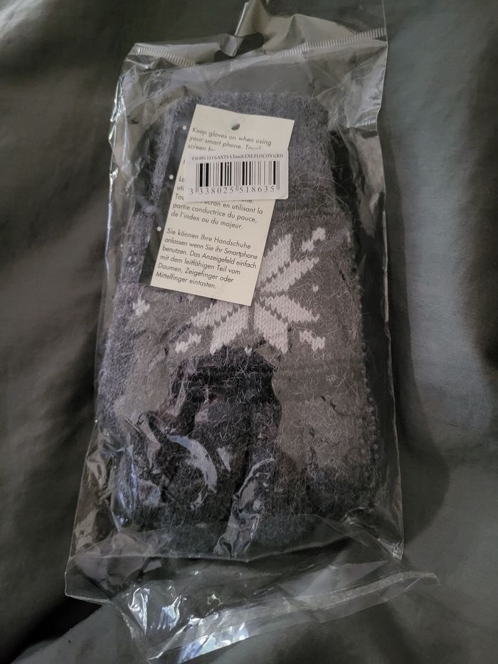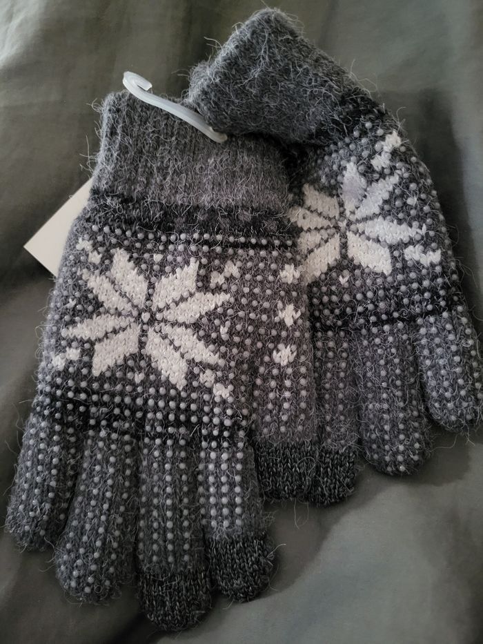 Gants de poney gris Taille enfant 3 doigts Tactile / Screentouch Gant en maille avec une doublure en polyamide très douce. Picots antidérapants. Neuf encore sous emballage