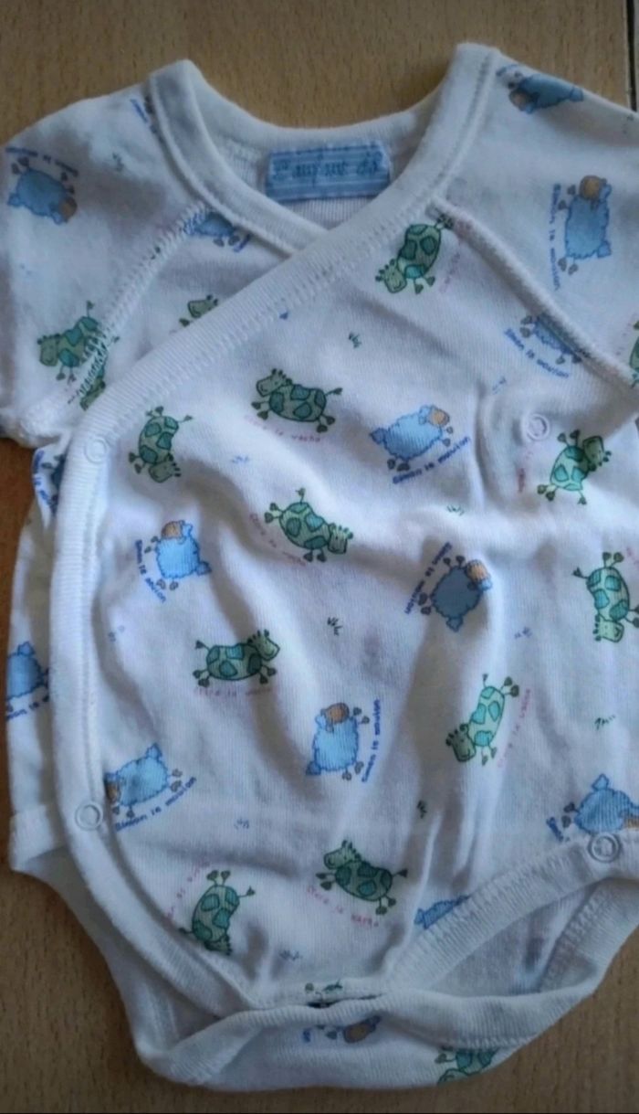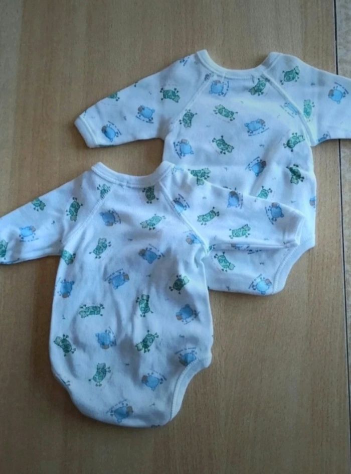 Lot de 2 bodies avec ouverture devant pour faciliter l'habillage de bébé. En très bon état. Taille 48 cm/naissance.