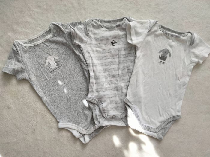Bonjour, Je vends un lot de 3 bodie mixte manche courte ✨ Taille 3 mois ✨ Marque Okaïdi ✨ Motif chien Pour plus d'info n'hésitez pas à me mp