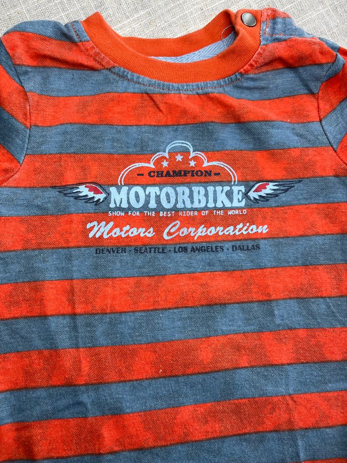 Joli t-shirt à manches courtes Rayures bi-colore Motif Motorbike Marque Premaman Taille 6 mois Groupez vos achats pour profiter des remises activée sur les lots et réduire vos frais de port