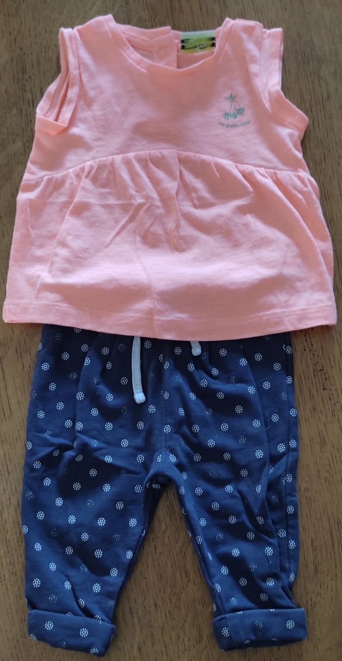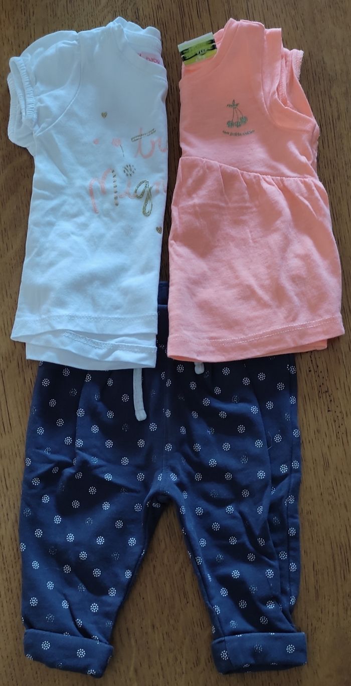⋗ Sarouel Obaibi 3 mois ⋗ t-shirt Gémo 3 mois (blanc) ⋗ débardeur Tape à l'oeil 3 mois (corail)