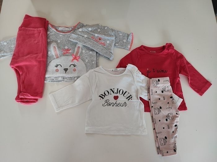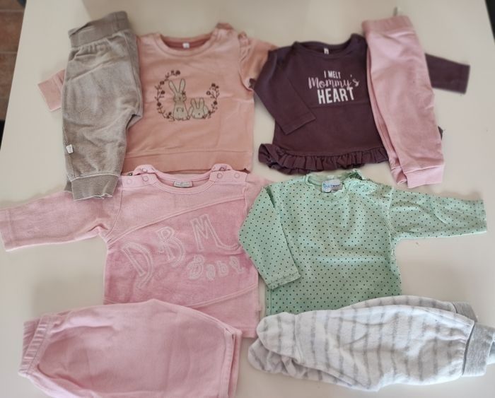 Lot 3 mois ( 62 cm) Bon état 32 pièces + 2 paires chausson bébé Marques: Kiabi, Gémo , z , catimini , s.oliver , .....