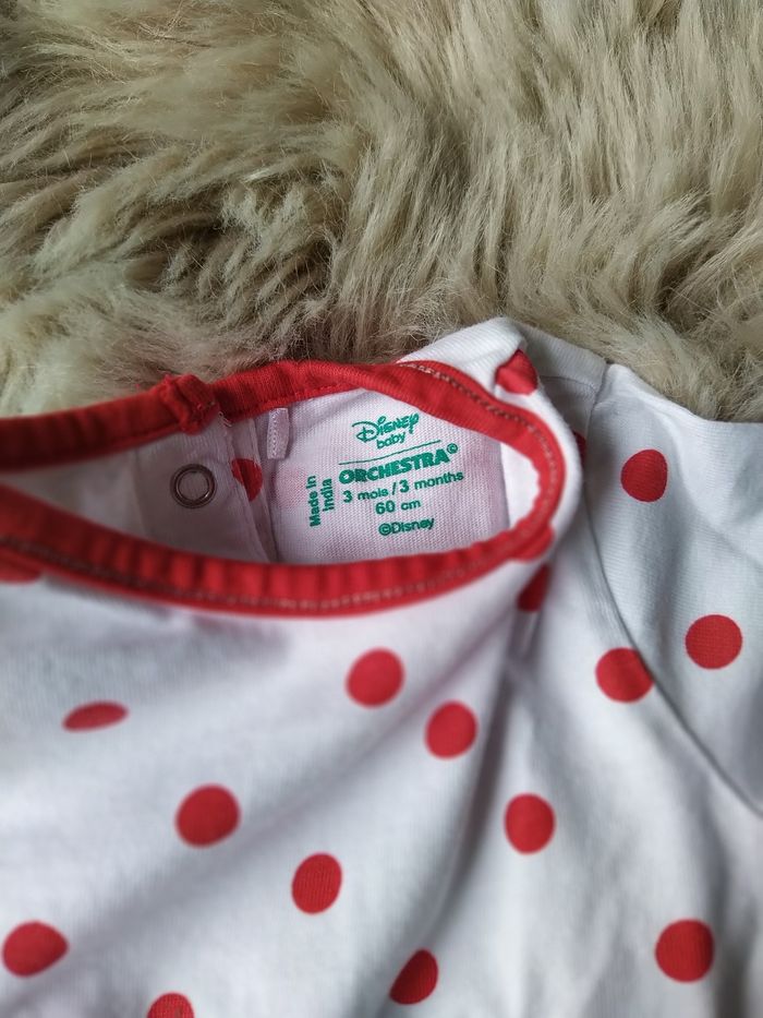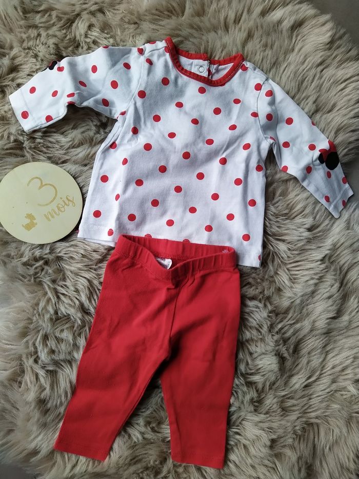 Ensemble comprenant : - 1 haut manches longues blanc à pois rouge Disney Orchestra - 1 legging rouge étiquette de la marque coupée Très bon état Taille 3 mois