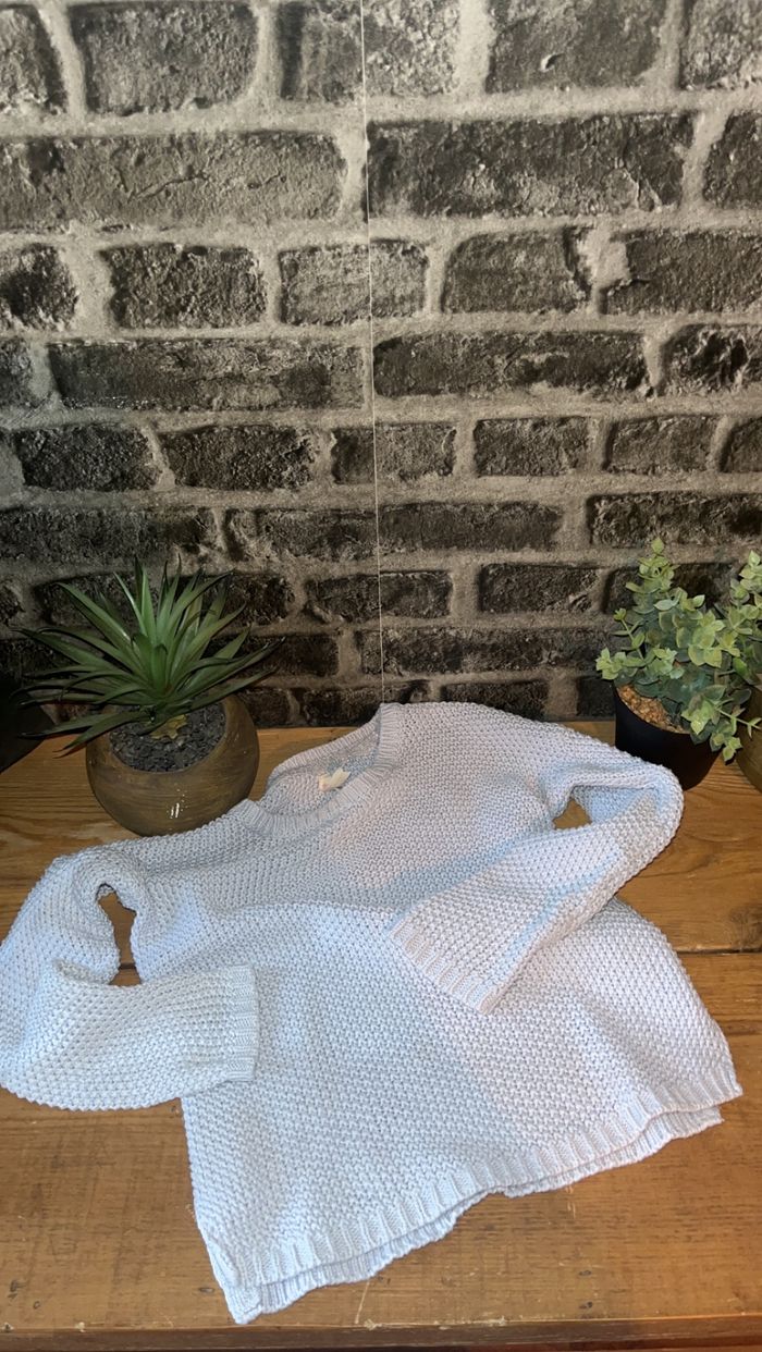 Bonjour je vend un pull à maille couleur lila clair YOUNG DIMENSION. Maison avec chat