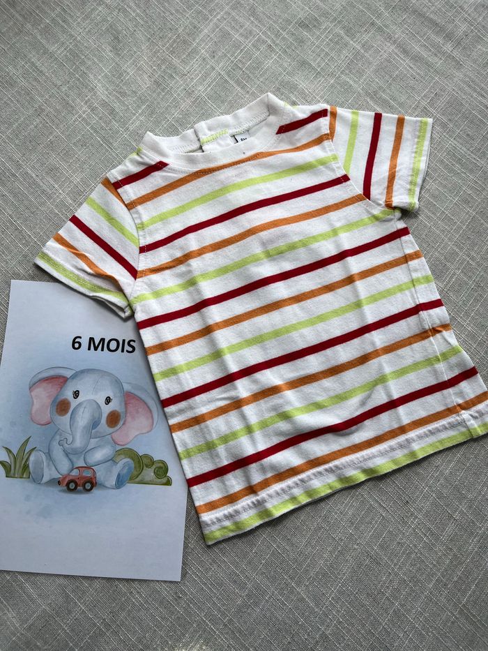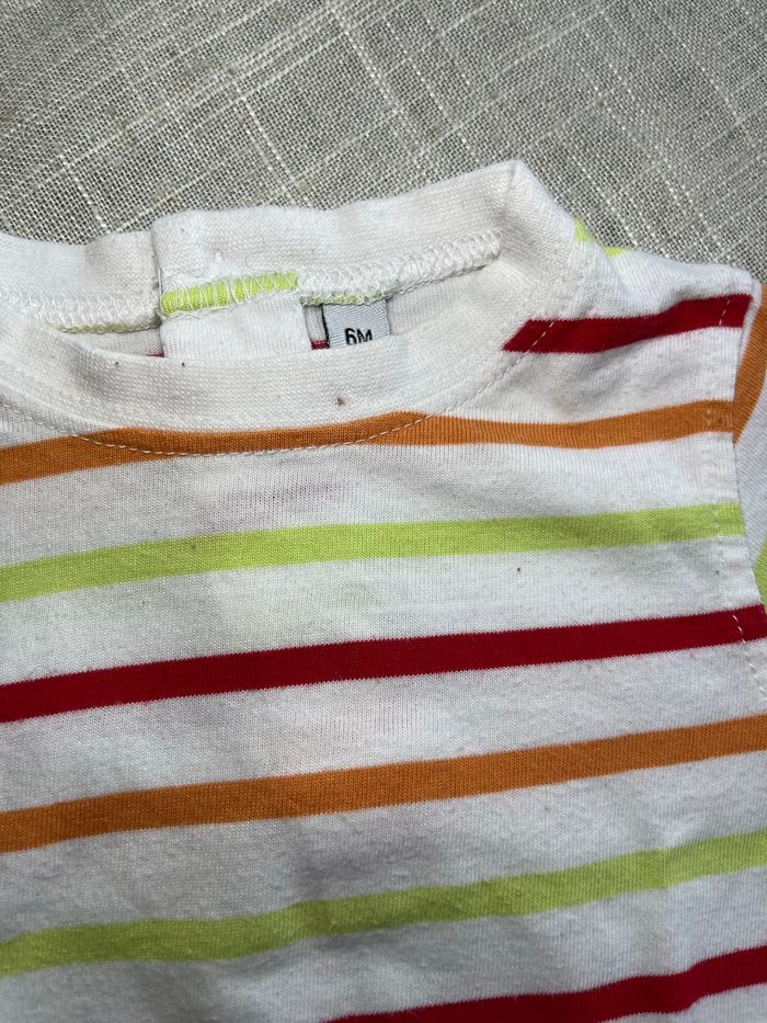 T-shirt à rayures multicolores Manches courtes Fermetures par boutons dans le dos Taille 6 mois Groupez vos achats pour profiter des remises activées sur les lots et réduire vos frais de port
