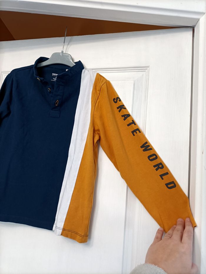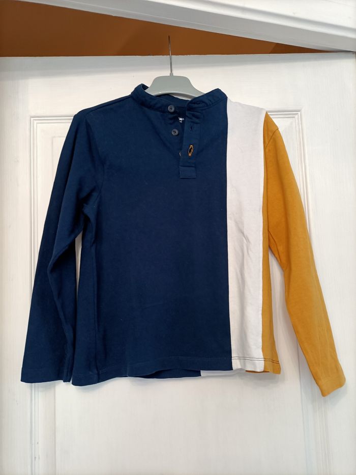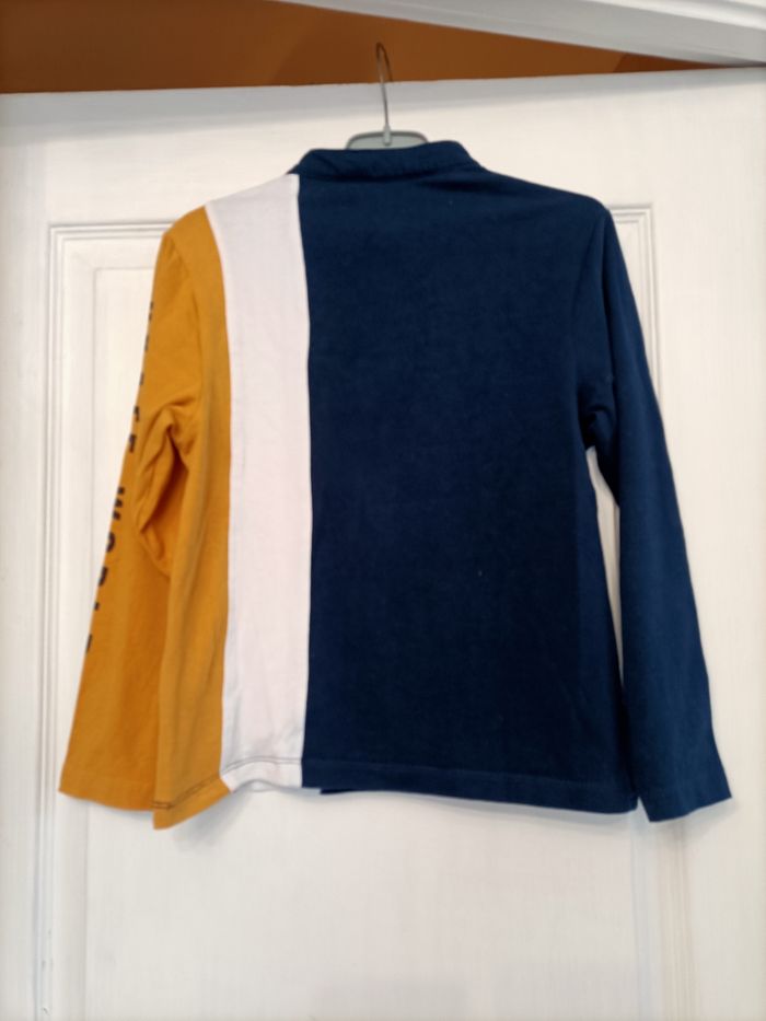 Haut manches longues bleu marine, blanc et jaune taille 8 ans. 3€