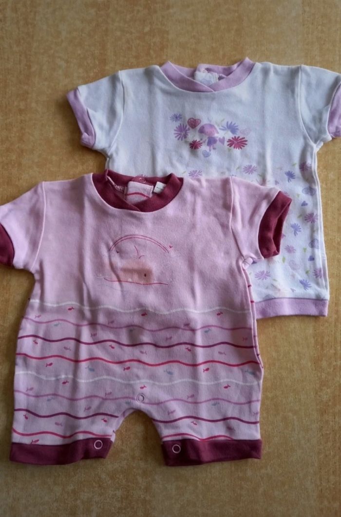 Lot de 2 combinaisons d'été. En bon état (la blanche a 2-3 petites tâches, voir photos). Taille 1 mois.