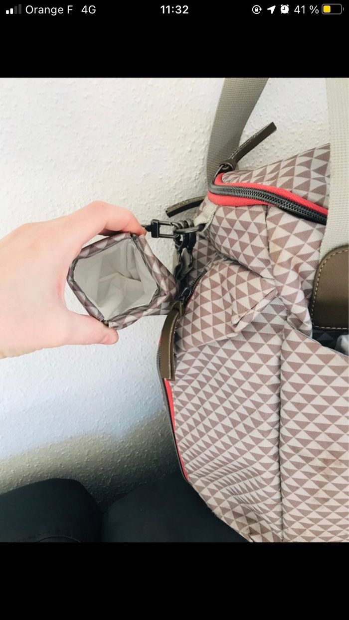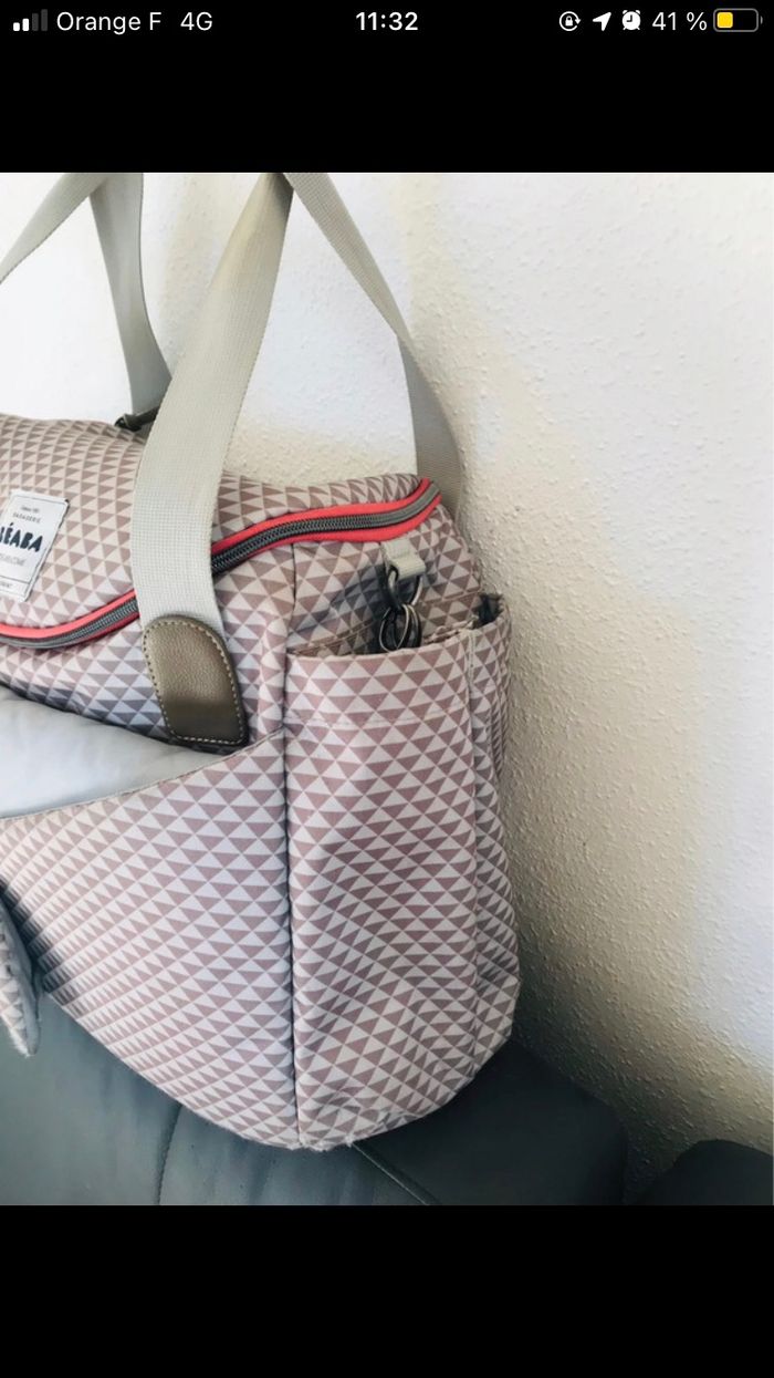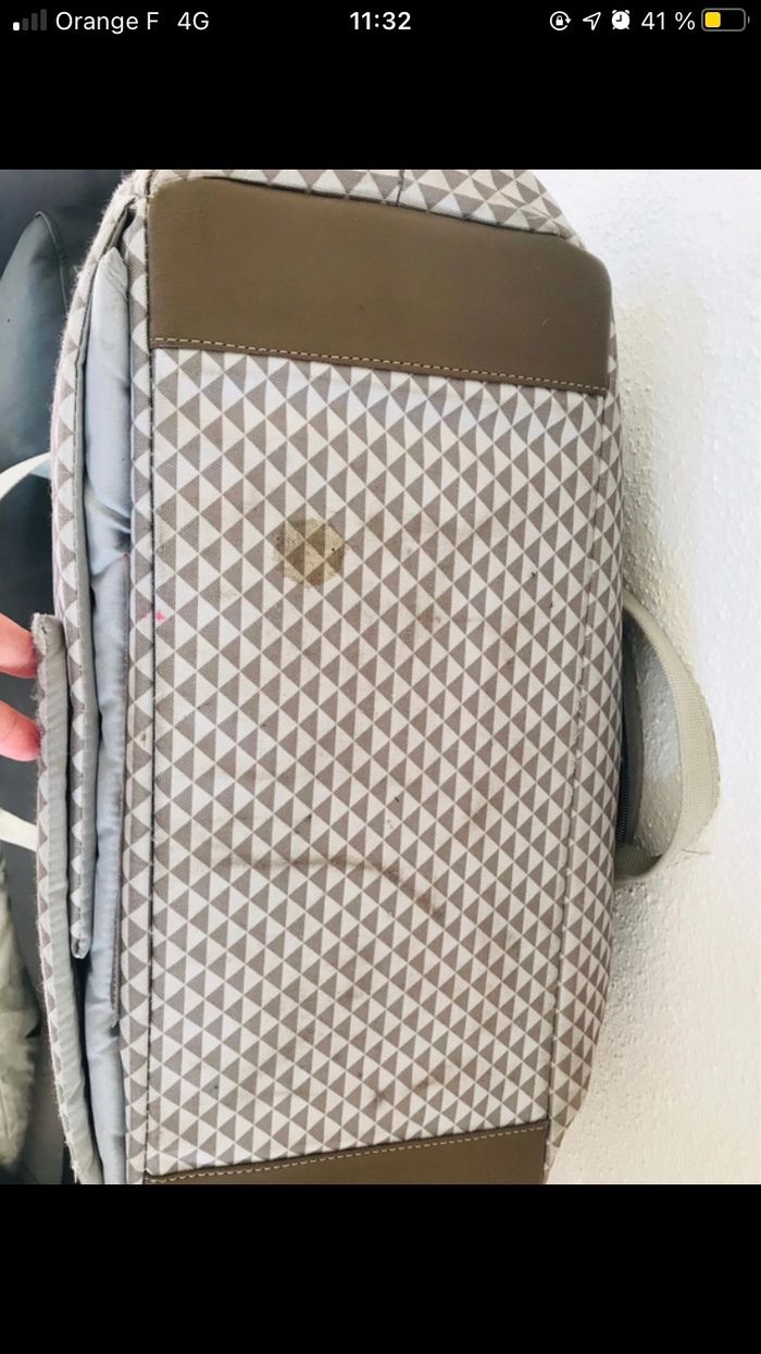 Je vends mon sac à langer Béaba PLAY PRINT en très bon état. Il y aura probablement un lavage à prévoir car de l’eau a coulé au fond du sac voir la photo, il a été utilisé durant deux ans donc des traces d’usure en dessous du sac sont présentes mais non visible comme ça.