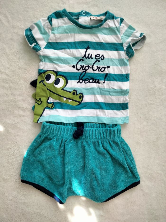 Bonjour, Je vends un ensemble short + t shirt de la marque Du Pareil au Même ✨ Motif crocodile ✨ Taille 3 mois Pour plus d'infos n'hésitez pas à me mp