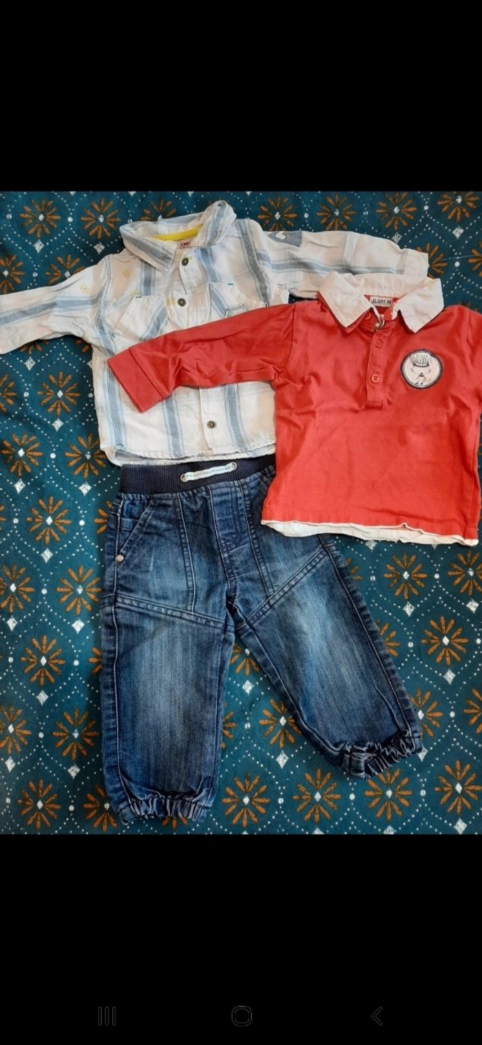 1xpantalon 1x chemise 1x t shirt manche longue Taille 12 mois