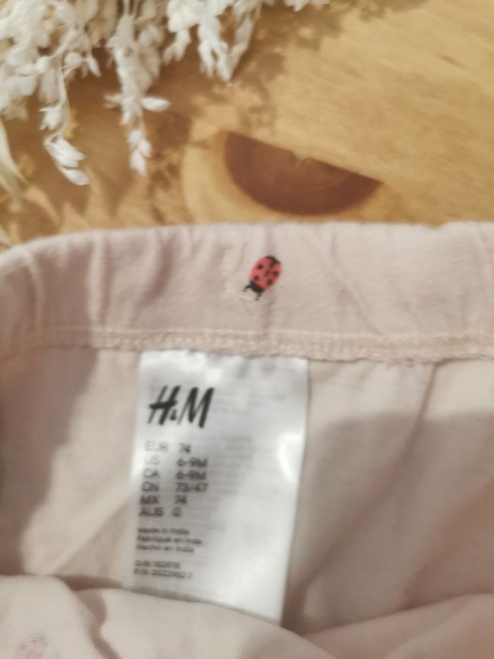 Pantalon sarouel H&M Rose clair et coccinelles 6/9 mois Tbe