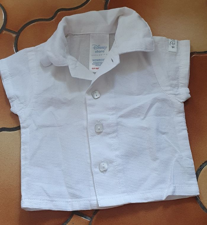 Chemise manche courte mit 1 fois, quasi neuve, juste une pte tâche derrière ( 2eme photo ), taille nouveau né, de la marque Disney store