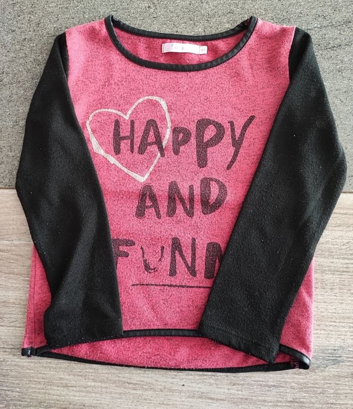 Pull fin noir et rose. Quelques bouloches.