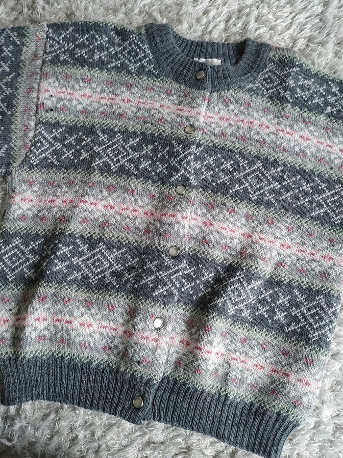 Gilet gris et rose 114 cm 6 ans Coudémail Quelques petites bouloches cf photos
