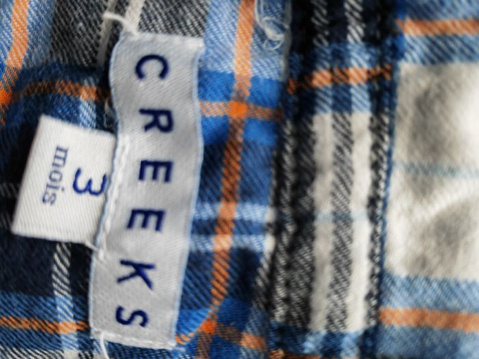 Vends lot de vêtements en 3 mois comprenant 1 pull primark, 1 chemise creeks et 3 bodies orchestra (dont 1 avec une légère tache voir derniere photo)