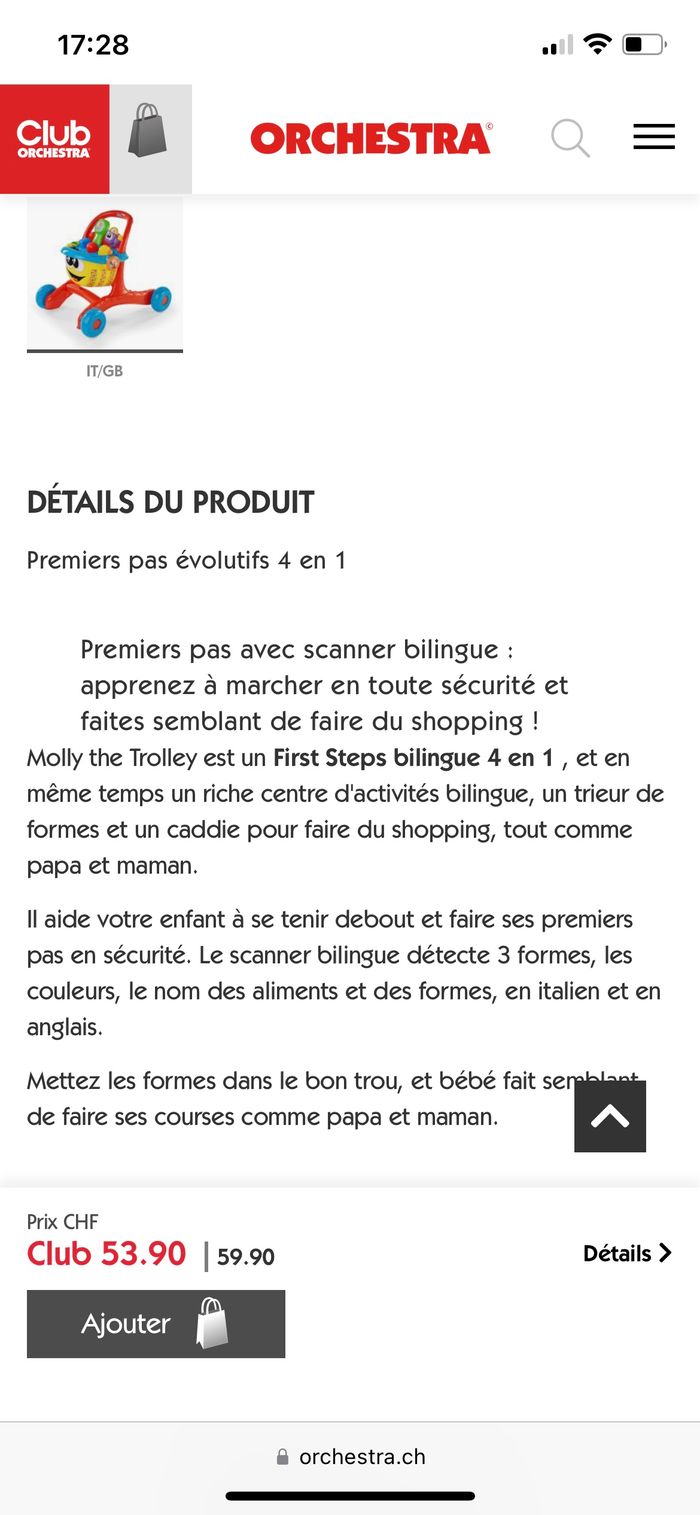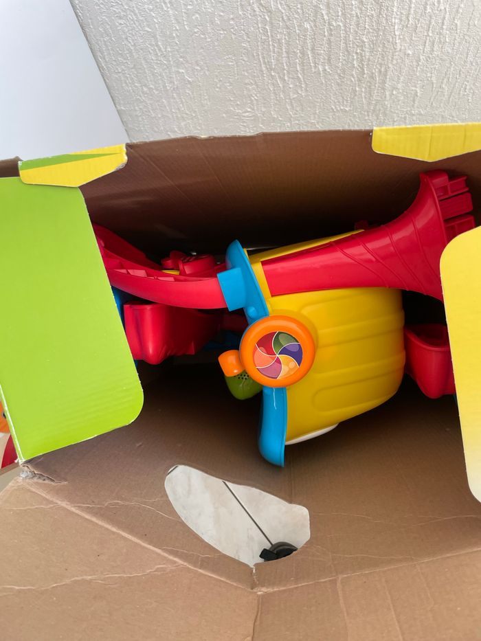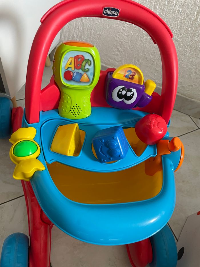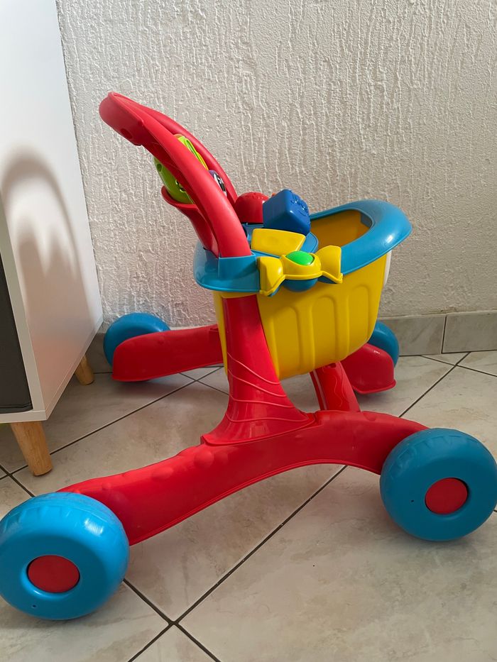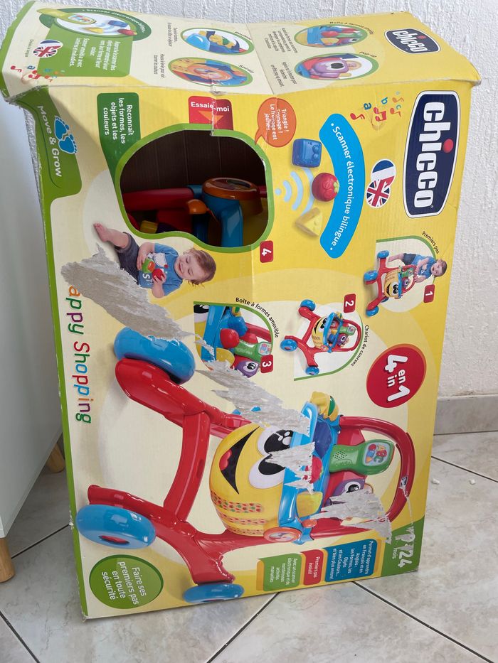 Happy Shopping est un jouet 4 en 1 : aide à la marche, jouet parlant bilingue, centre d'activités manuelles et jeu d'imitation ! À prévoir de changer les piles et il n’y a pas les autocollants comme vous pouvez le voir sur la photo sinon excellent état car pas trop utilisé ACHETÉ À 53,90€ à orchestra vend 30 euoros (boite d’origine un peu abîmé mais je l’ai acheté comme ça car c’était le dernier) Prêt à l’envoie , pas entièrement démonter pour faciliter le montage