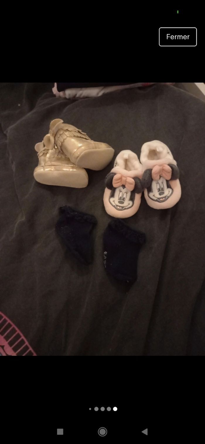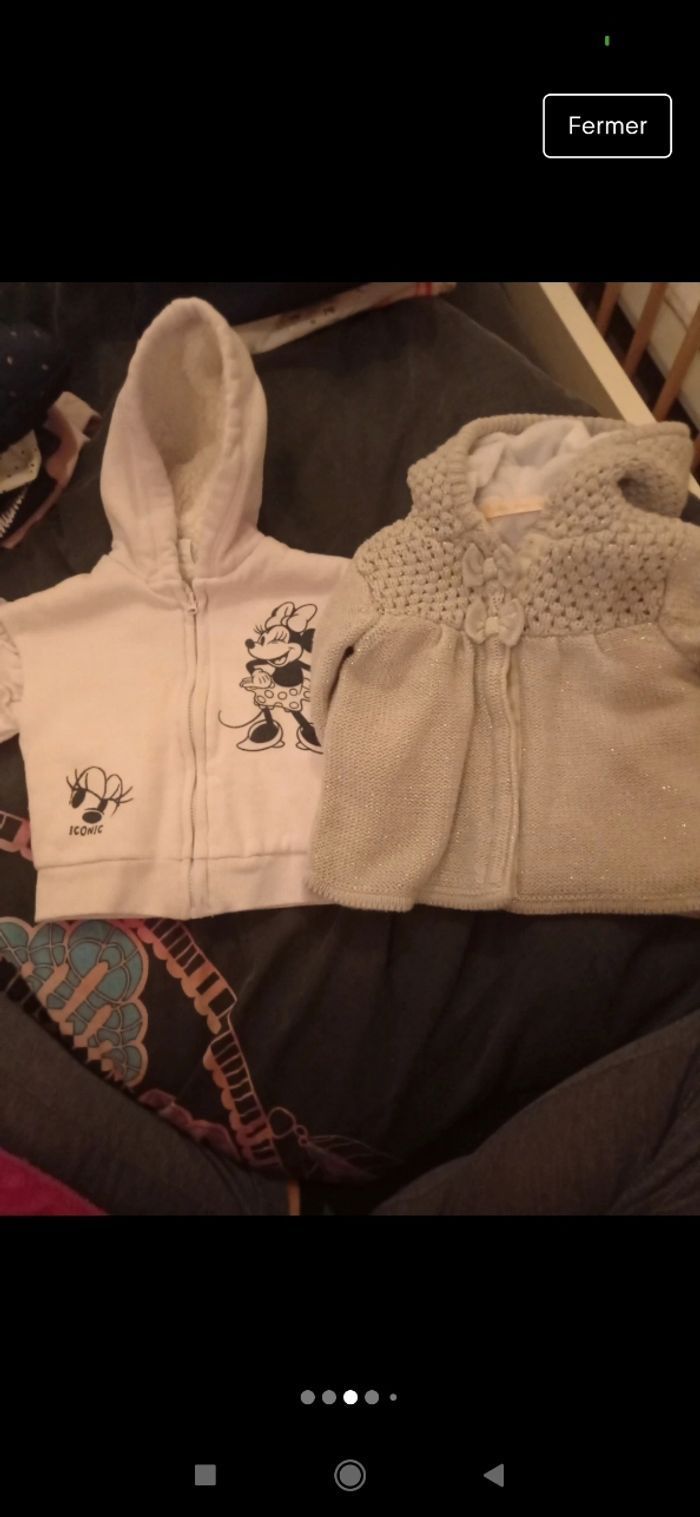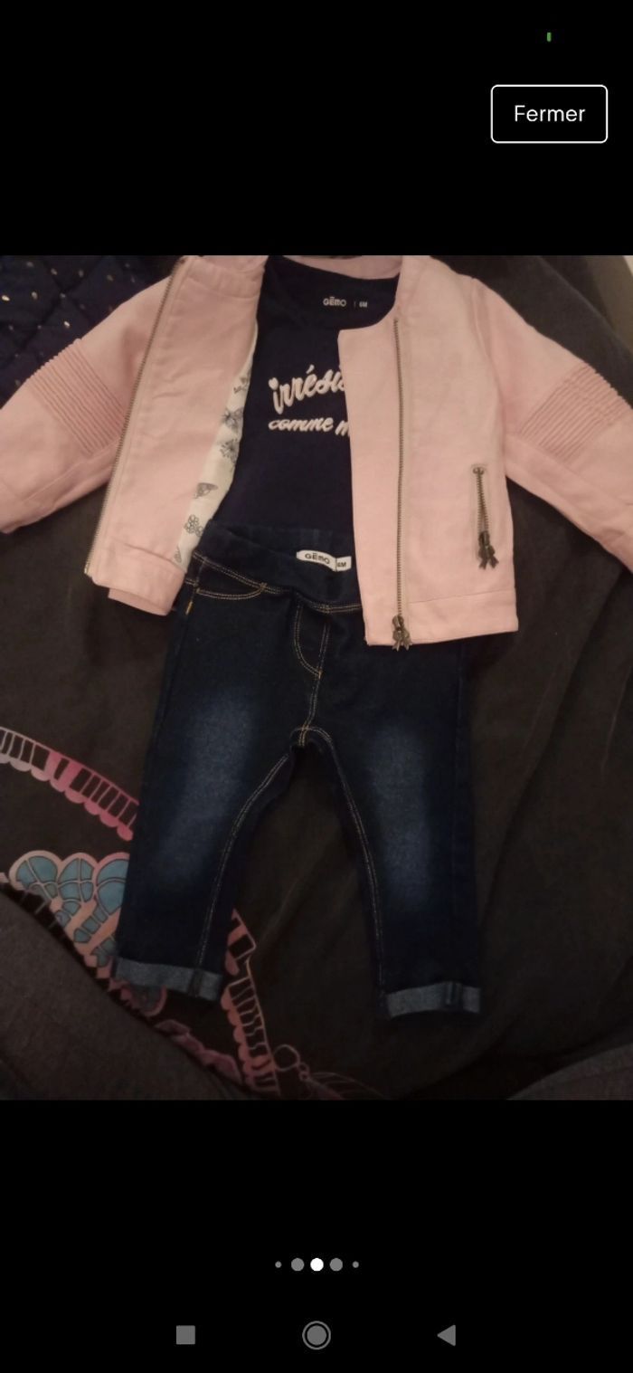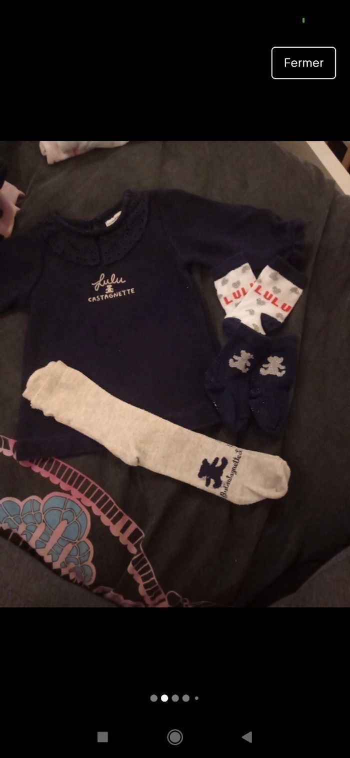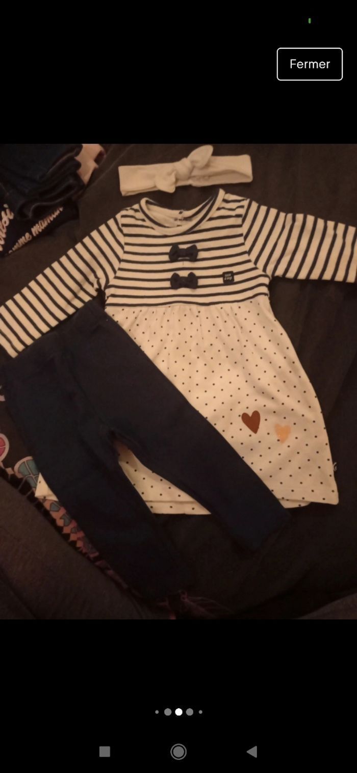 Lot de vêtements 6 mois en très bon état général le lot est composé de : 1 manteau 1 paire de chaussure 1 paire de pantoufles 3 paire de chaussettes 1 veste en cuir rose 2 pantalons 1 bandeau 2 veste épaisse 1 paire de collants épais 1 robe 1 pyjama épais 1 pyjama fin 1 tee shirt manche longue 1 tee shirt manche longue col roulé