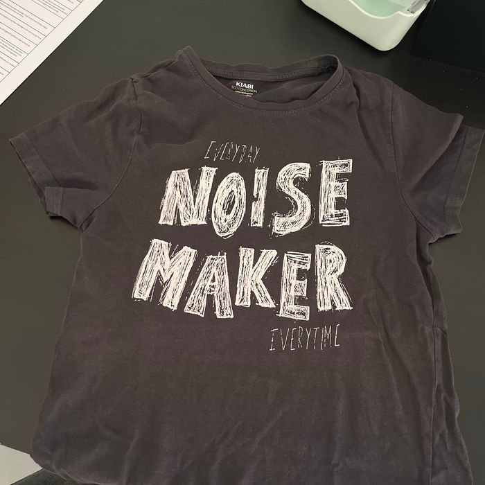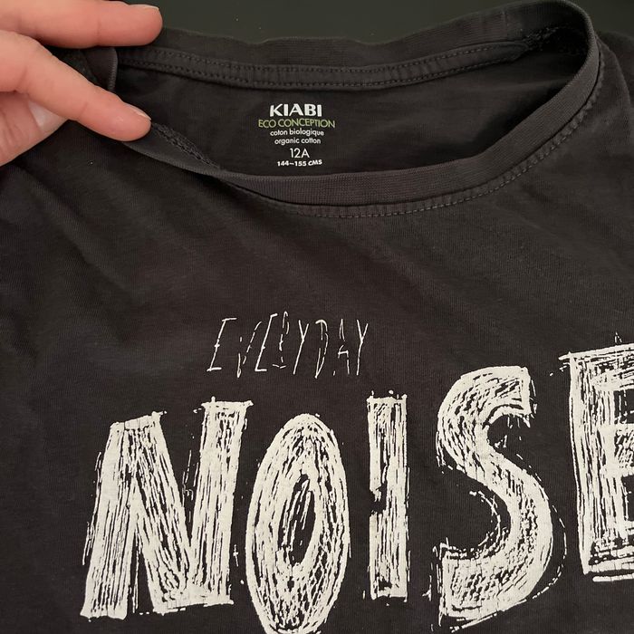 T-shirt à manches courtes noir pour garçon, taille 12 ans, marque Kiabi avec motif à l’avant. En excellent état, pas déchiré pas taché.