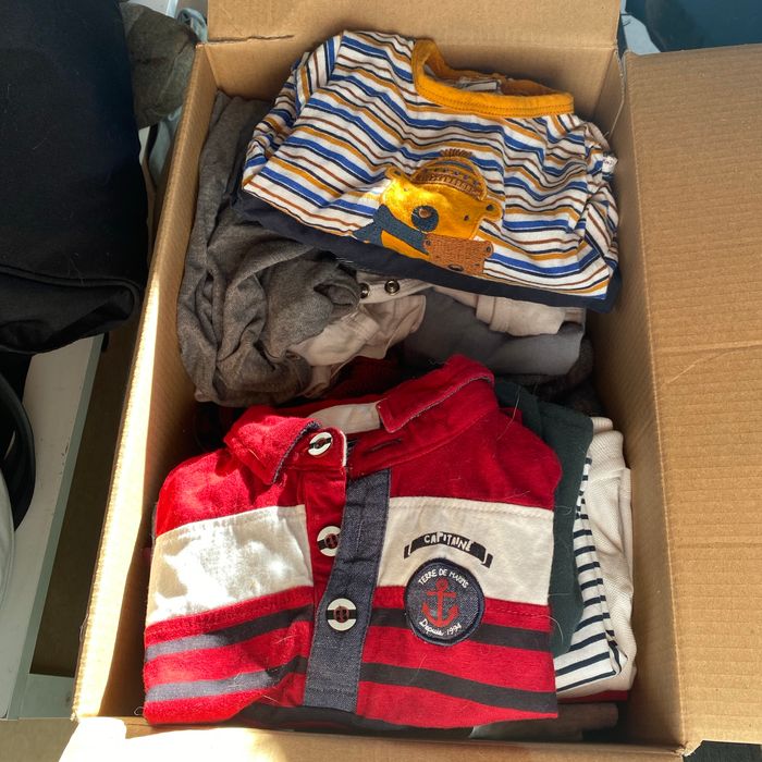 Je vends un lot de vêtements en 6 mois Entre 30-35 pièces Tenue complète (3-5) Beaucoup de t shirt et manche longue Quelque body (5-8) 2 pyjamas Une salopette Beaucoup de vêtements acheter neuf et très porté Aucune tache aucun trou Beaucoup de gemo/Kiabi Sergent major, tape à loeil
