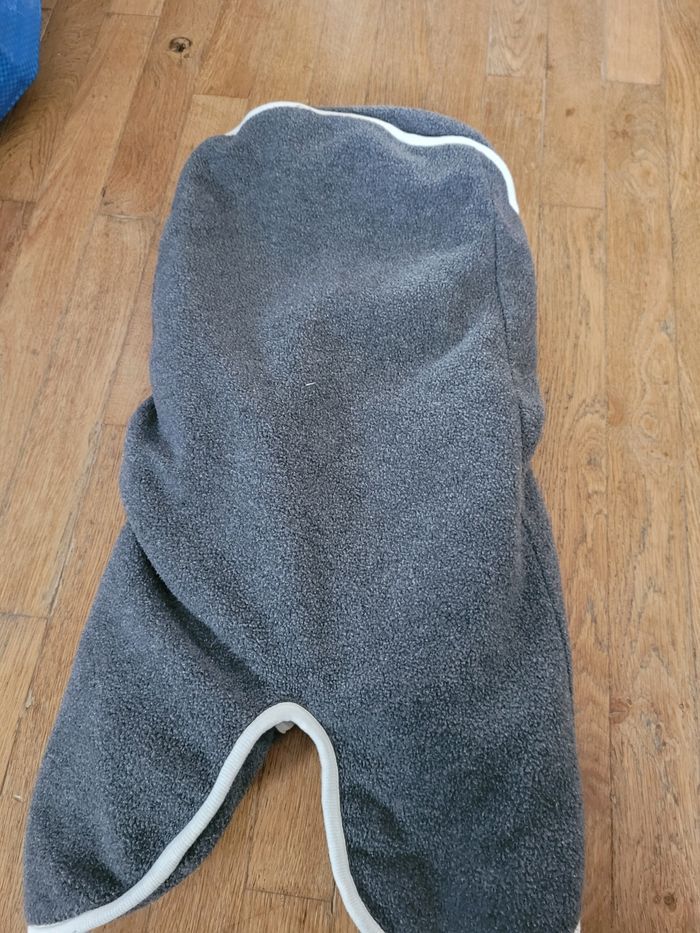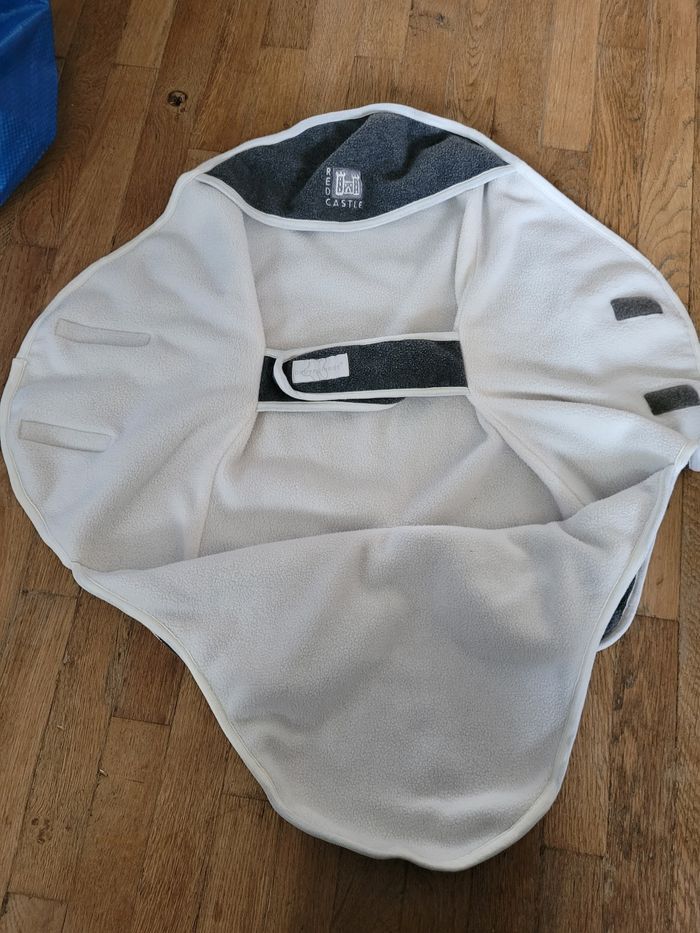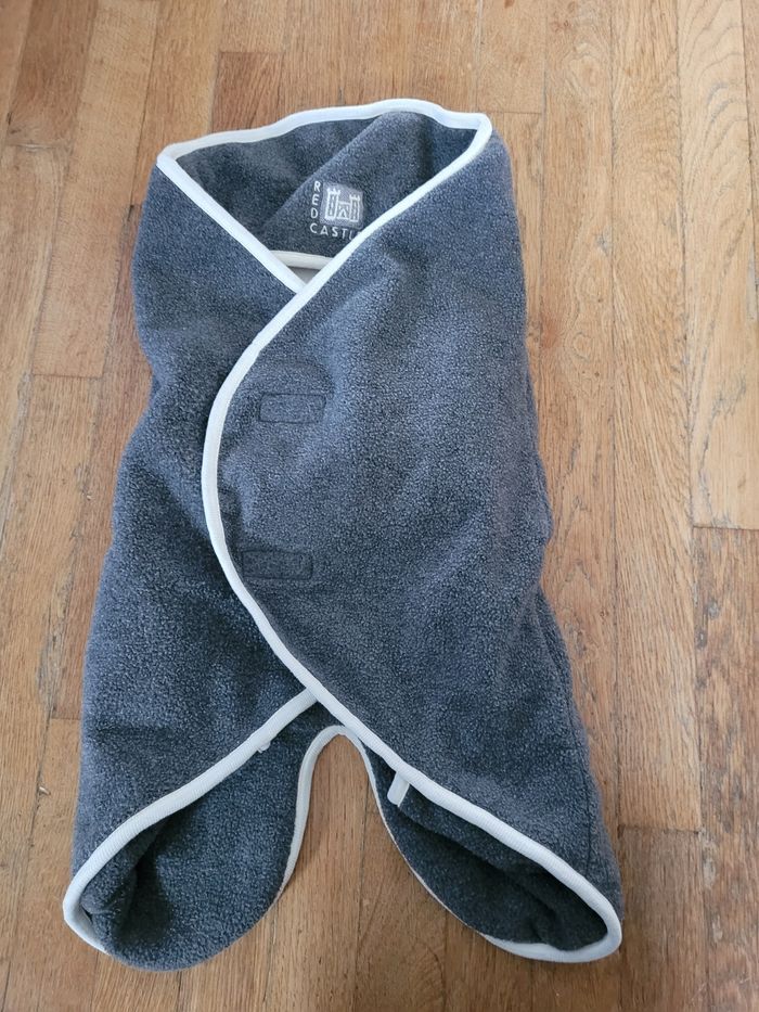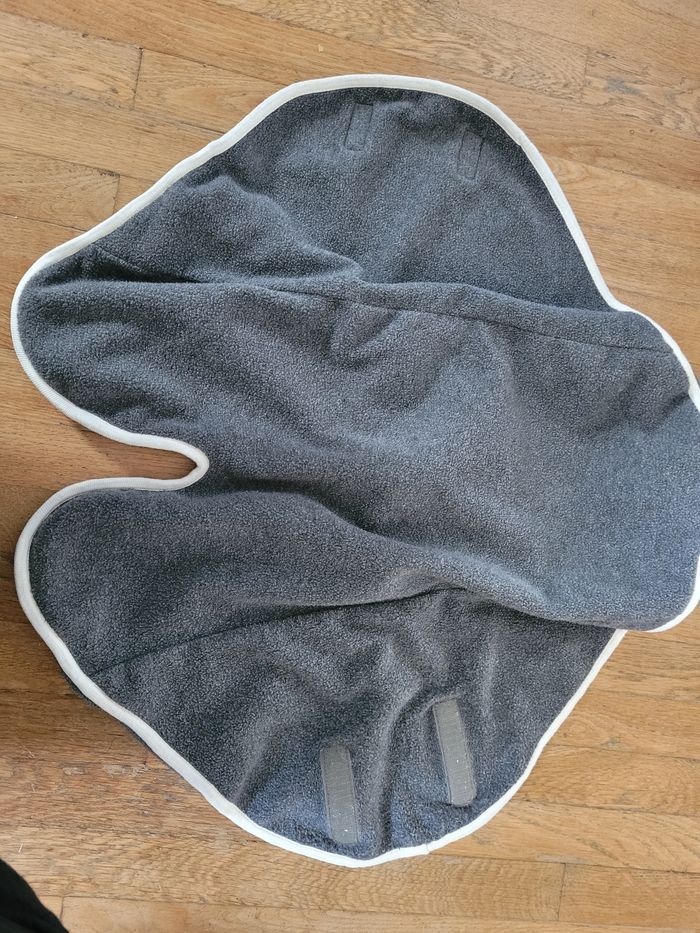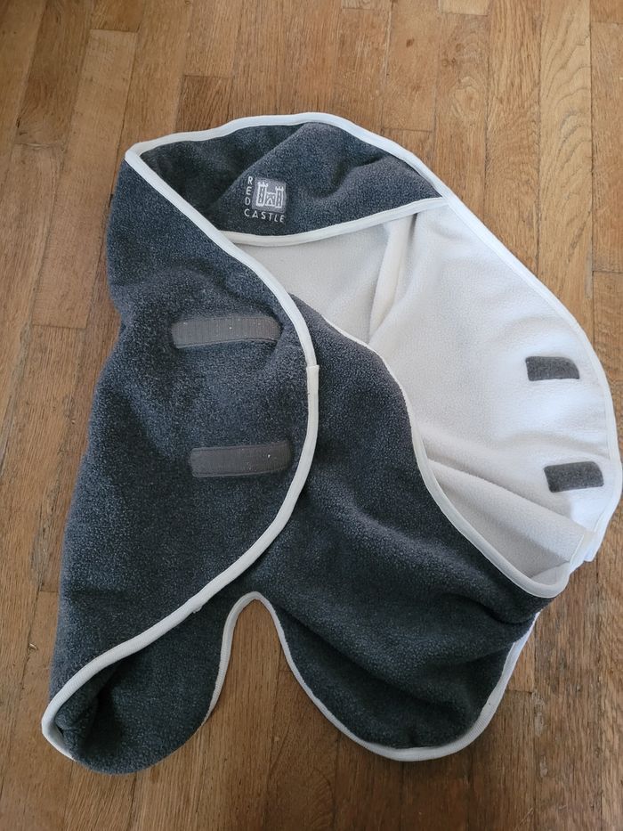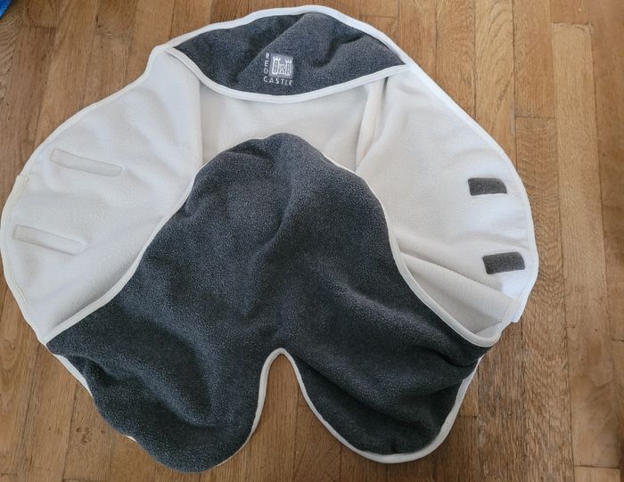 Couverture Babynomade Idéal pour les nouveaux nés, couverture douce et moelleuse apporte confort et chaleur à bébé. Se ferme aisément grâce à ses attaches velcros. Pratique et facile d'utilisation, Babynomade permet d'envelopper instantanément bébé sans le déranger, tout en le protégeant des intempéries. Accessoire idéal pour les premières sorties en siège auto "coque", en nacelle ou dans le porte bébé Lavable en machine à 30° Gris foncé Matière: polaire Dimensions82x95 cm- de la naissance à 4 mois Bon état, tissu un peu bouloché mais n'empêche pas la bonne utilisation