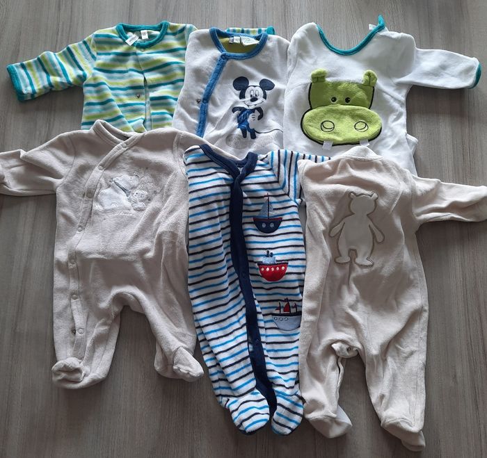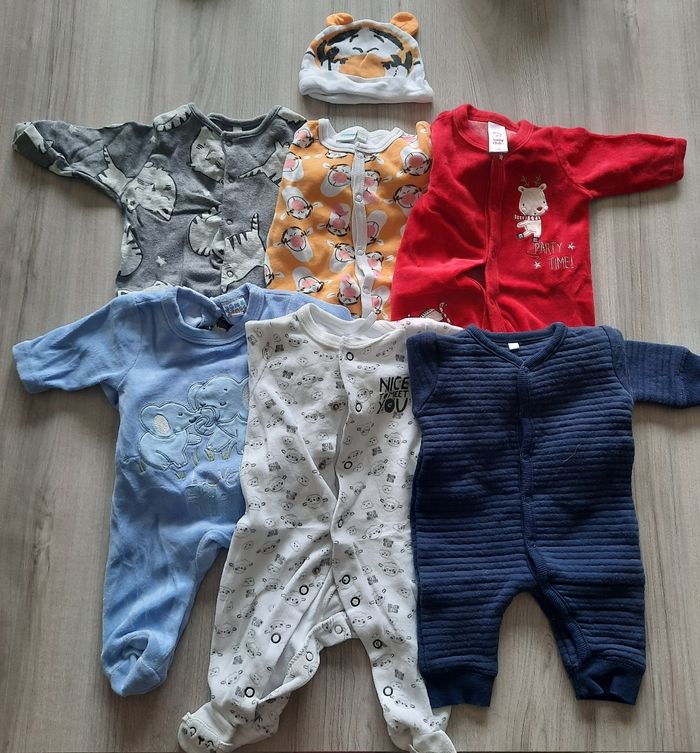 Lot de vêtements de 0 à 1 mois comprend des pyjamas, bodys, ensembles, bonnet, chaussettes, manteaux ect... Pour un total de 73 pièces.