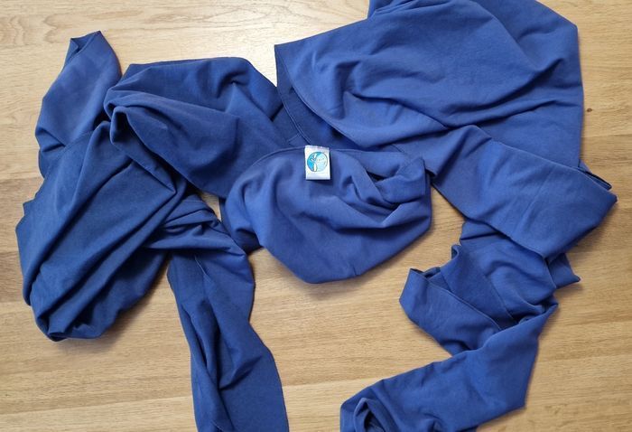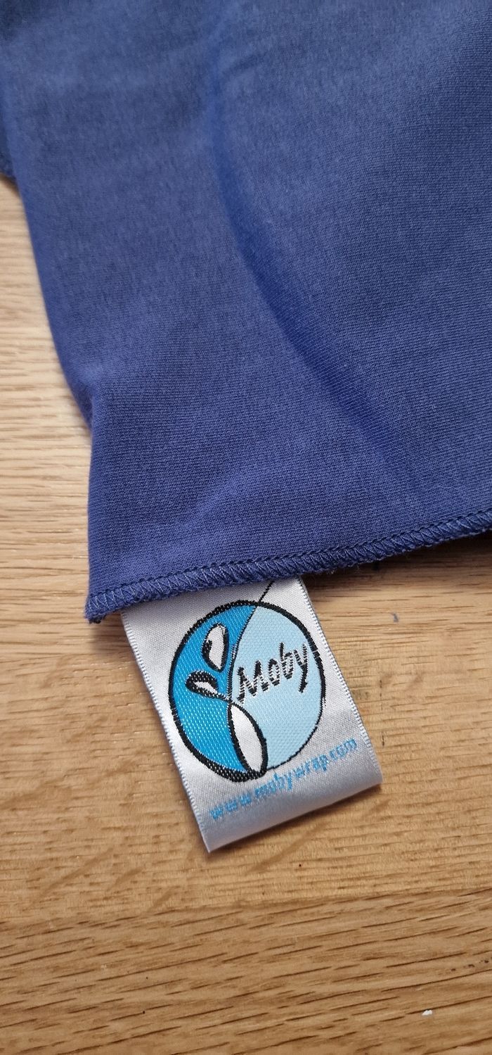 Écharpe de portage bleu, de la marque Moby, en excellent état. Envoi rapide et soigné.
