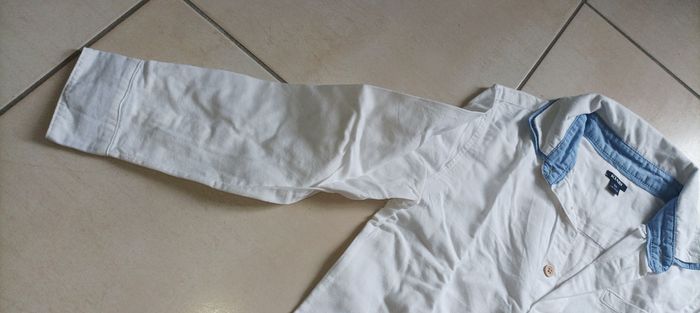 Blanche avec col bleu ciel En très bon état Peu utilisé