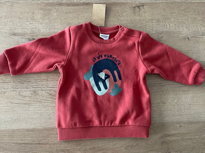 Sweat bébé garçon en coton de chez tape à l’œil Sweat en coton recyclé En coton gratté tout doux à l’intérieur Bouton pression côté épaule Neuf avec étiquette Taille 6 mois