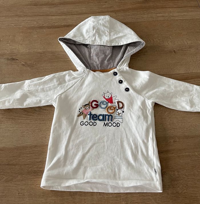 Tee shirt manche longue avec capuche Bouton détachable devant De chez Obaibi Neuf jamais porté 6 mois