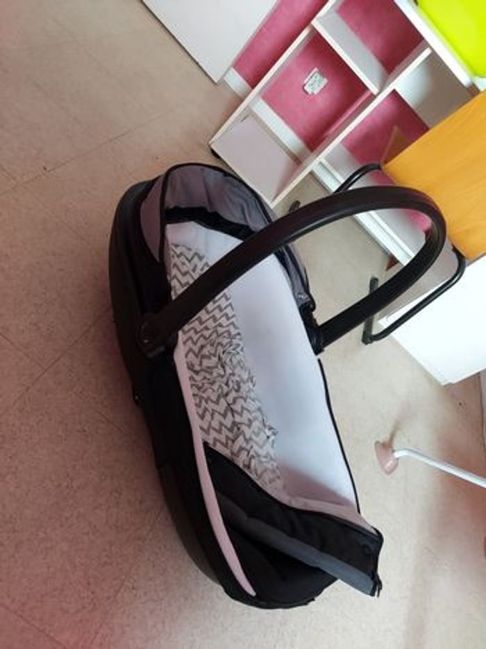 Pousette trio de marque Chicco acheté chez Aubert, vendu avec la nacelle et le cosy avec sa base à appliquer en voiture. Très bon état. Prix négociable et vente en main propre seulement.
