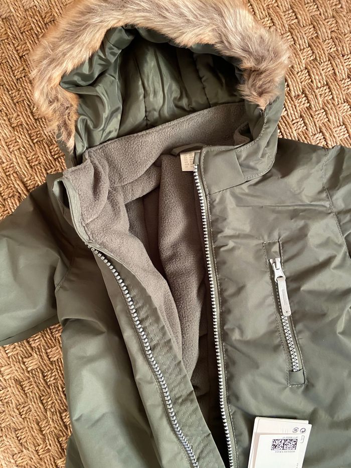 Combinaison matelassée. Modèle déperlant qui protège votre enfant de l'humidité et lui permet de rester au sec dans la neige comme sous les averses. Capuche amovible matelassée et bordée de matière douce, col droit et fermeture à glissière surmontée d'un protège-menton qui limite les risques de frottement. Petite poche zippée en haut et élastique dans le dos. Parties renforcées sur les genoux et dans le dos pour plus de solidité. Élastique habillé aux poignets et en bas de jambe. Elastique renforcé sous le pieds. Détails réfléchissants pour plus de visibilité dans la pénombre. Doublée. Article dont la surface a subi un traitement déperlant BIONIC-FINISH®° ECO, sans fluorocarbones.