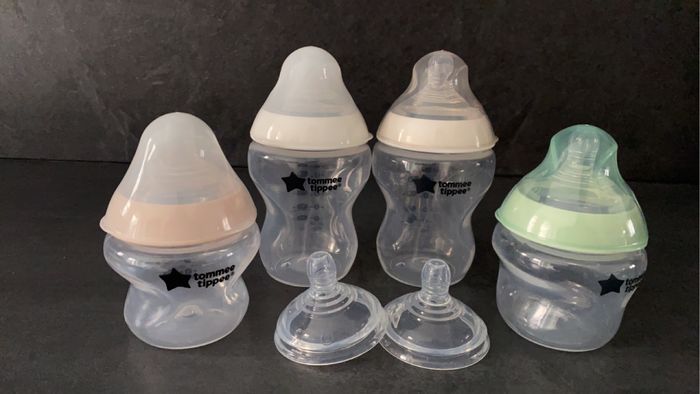 4 Biberons Tommee tippee Neuf Essaie d’un biberon mais ma fille ne les acceptes pas les autres biberons sont neuf.