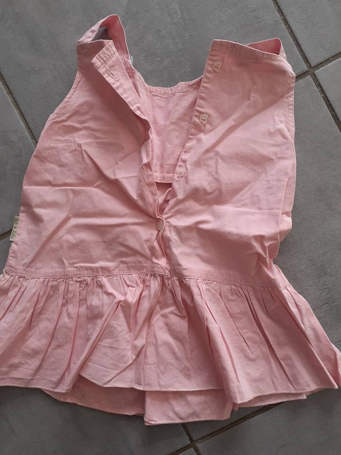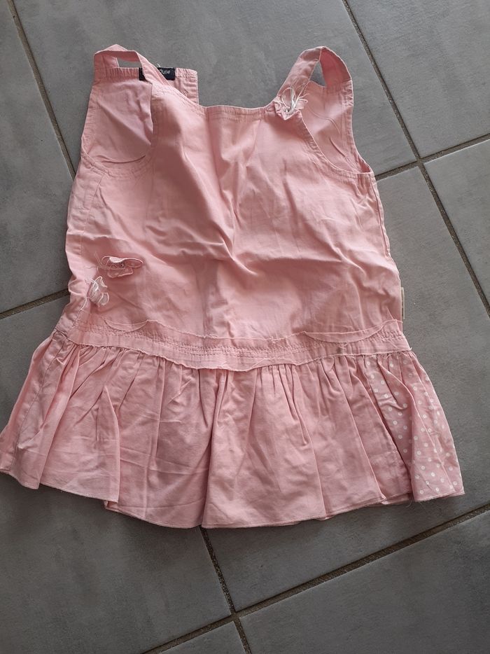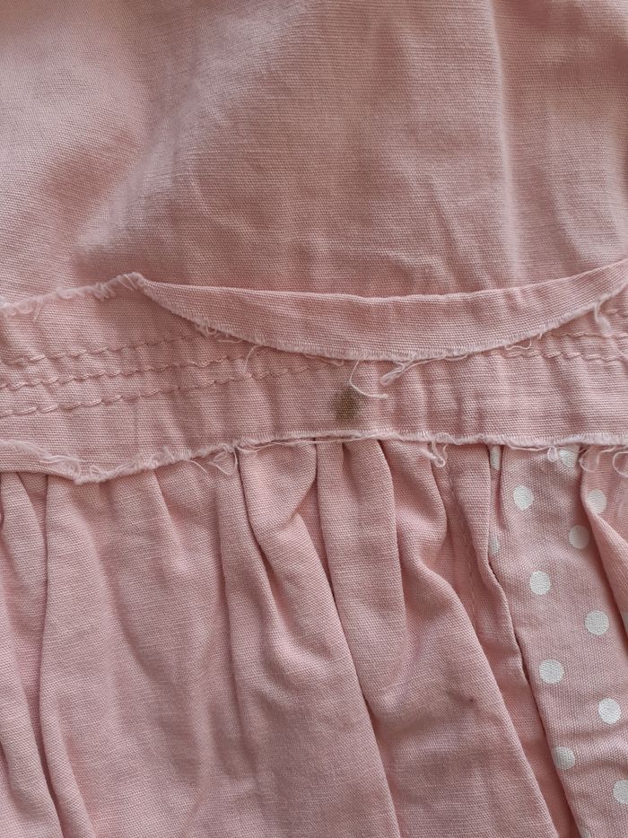 Robe été rose 23 mois. Marque bob et Julie. Bon état mais présence d'une tâche sur le devant en bas de la robe. Voir 3eme photo.