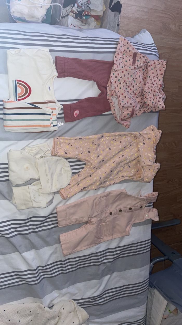 Vend vêtement bébé fille taille 1 à 3 mois . États propre comme neuf , maison non fumeur prend soin des affaires. Quelque image des habille: bodie , pyjama, gilet , ensemble , gigoteuse ect vend en lots si possible .