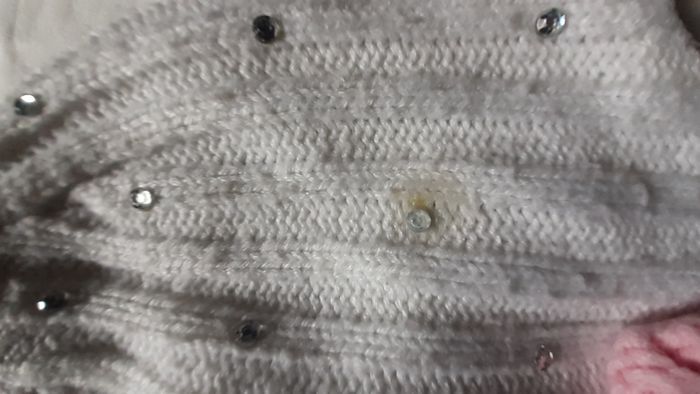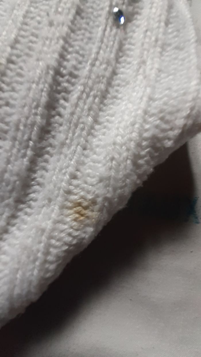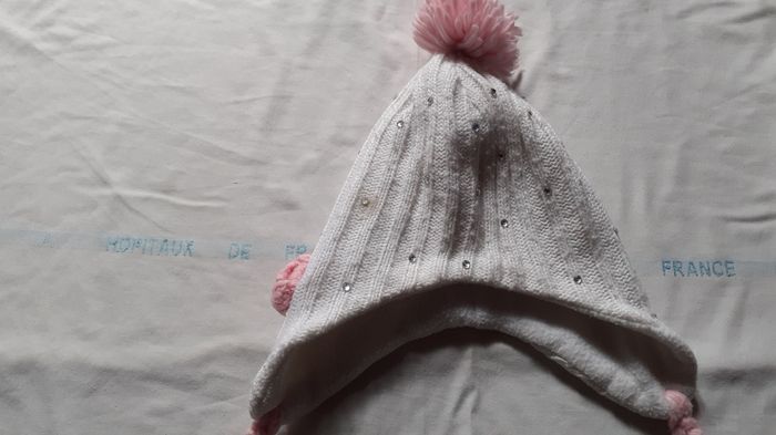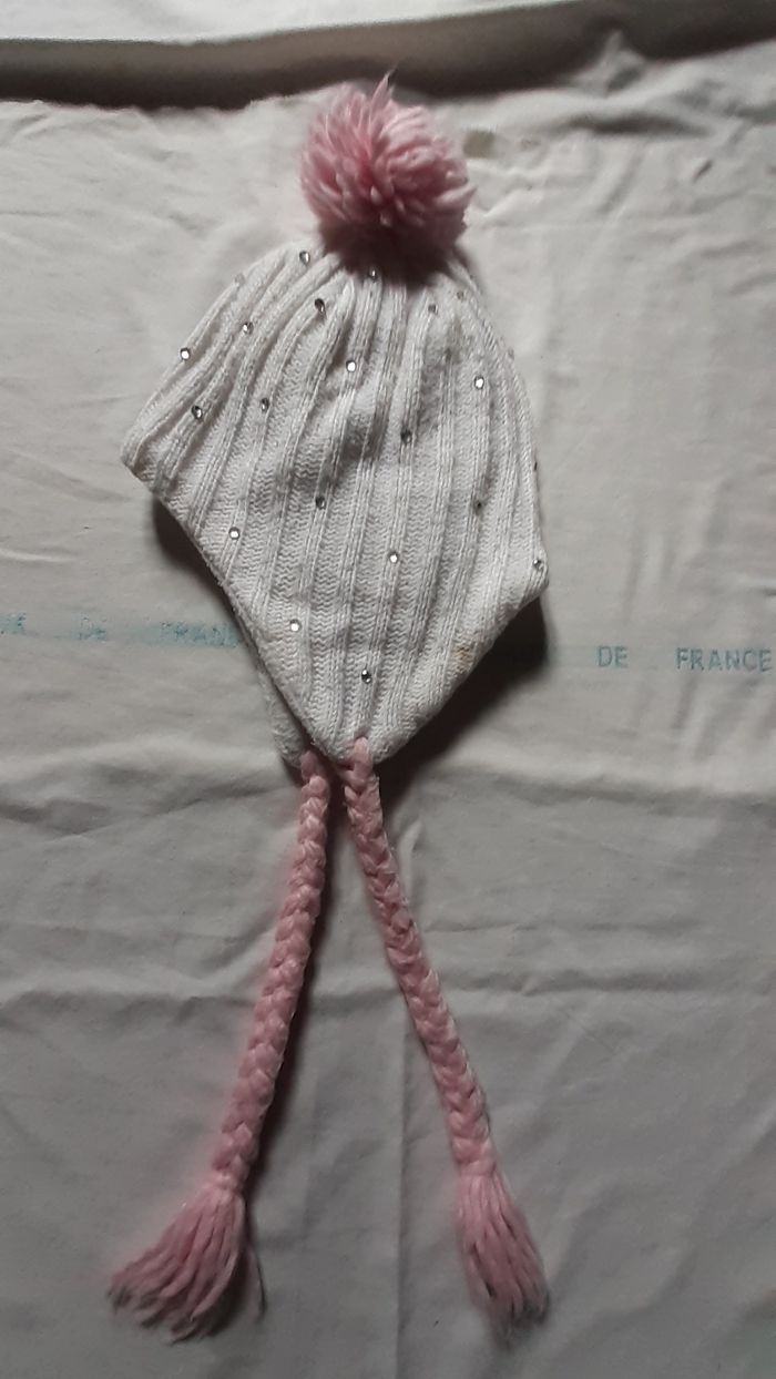 Bonnet péruvien blanc et rose chaud avec strass 5/8 ans ( taches jaunes de la colle tenant les strass)