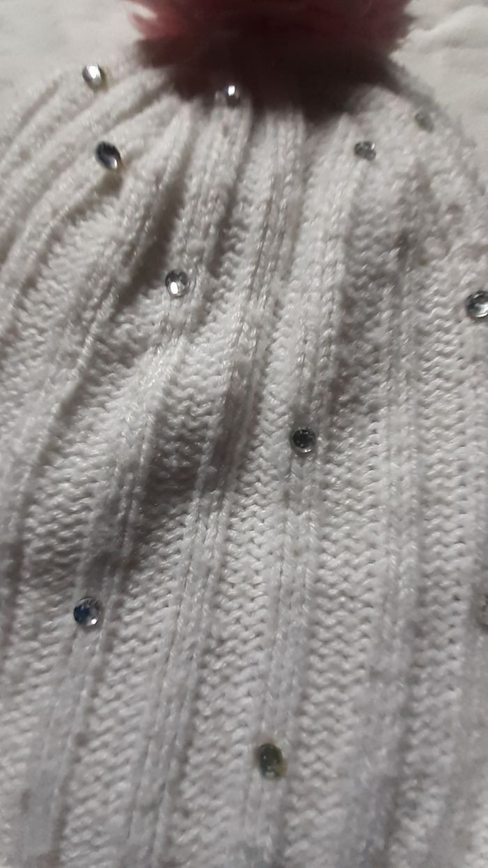 Bonnet péruvien blanc et rose chaud avec strass - photo numéro 4