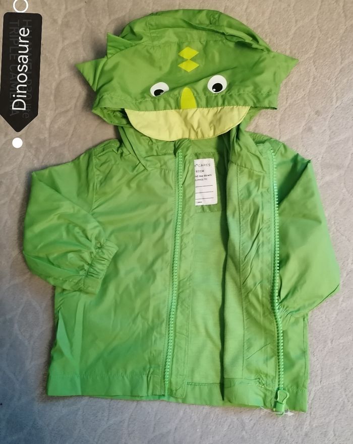 Imperméable garçon dinosaure. 0/3mois. 62cm. Capuche intégré Fermeture zippée. 100%polyester. Jamais porté. 7€