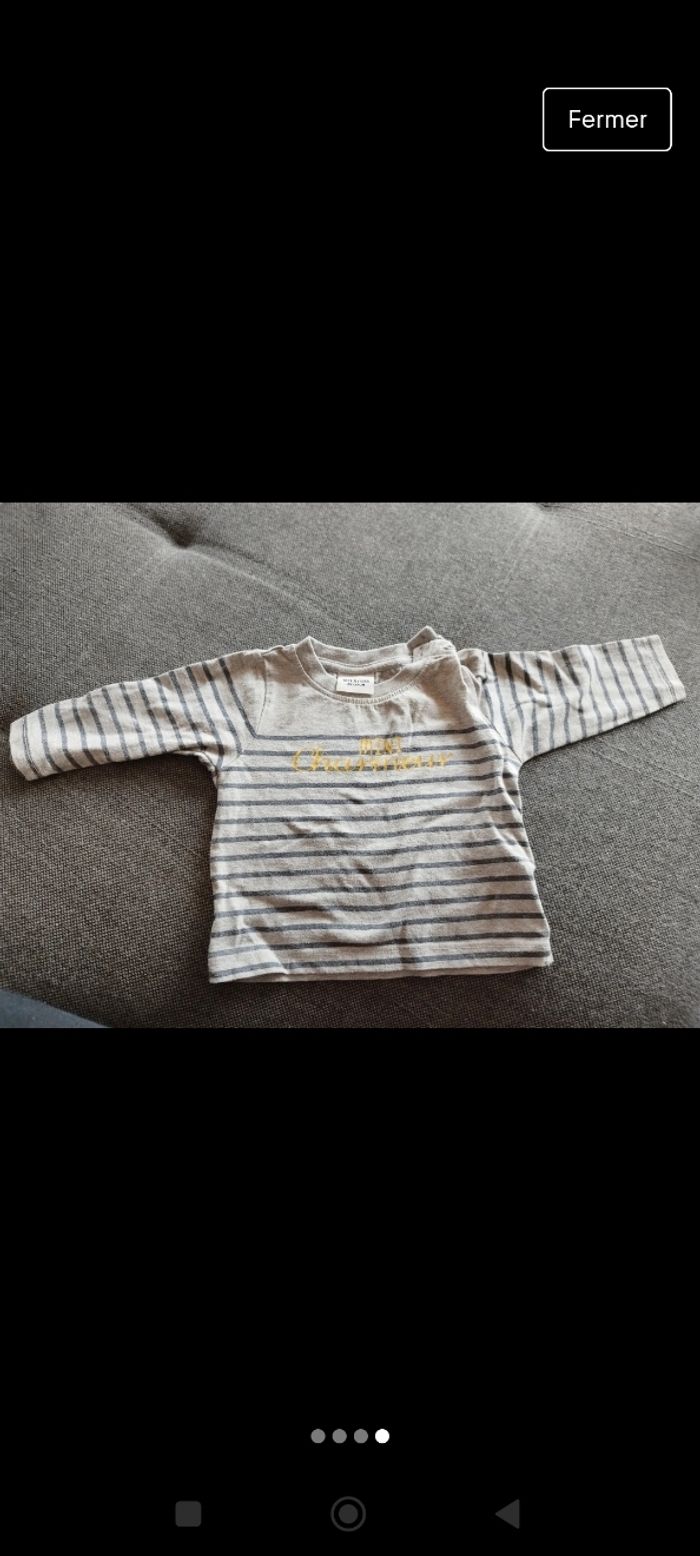 A vendre trois tee-shirt manches longues garçon 3 mois TBE 1gris marinière TAO 1 gris foncé uni TAO 1 bleu marinière lupilu (noté 0-2mois mais correspond à du 3 mois ?