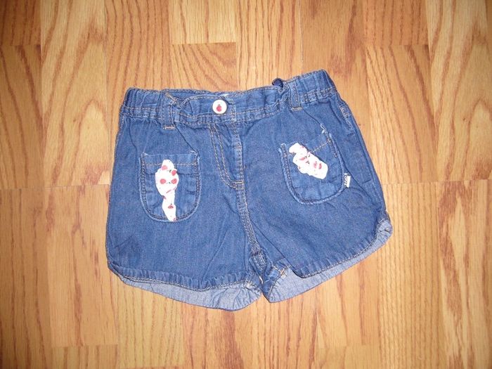 * Adorable robe salopette Minnie en coton H&M en taille 12 mois. En très bon état. * Short coton de marque C&A en taille 12 mois. En très bon état. Peu porté. Il a des boutons en forme de coeur et a deux poches sur le devant. * Chemisier/haut de marque Tape à l'Oeil en taille 12 mois. On peut le mixer aussi bien avec une jupe, un short ou un pantalon. Dentelle au milieu. 3 pressions au dos Très bon état. * Short en coton de marque Kimbaloo en taille 12 mois. En état neuf porté 2 fois. Prix ferme merci.
