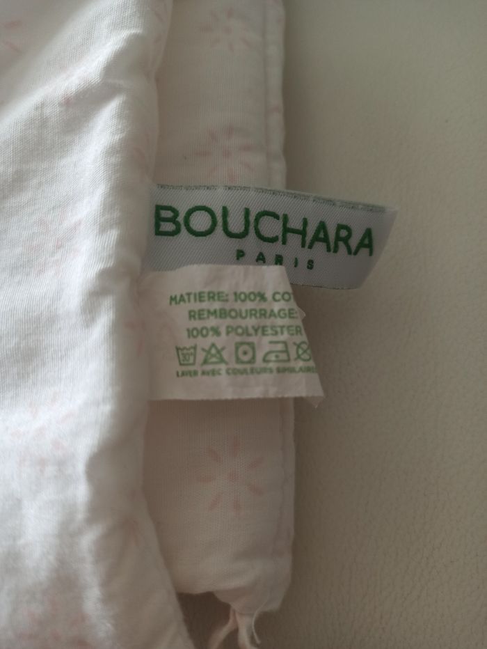 Tour de lit et gigoteuse bébé fille Bouchara blanc avec etoile rose poudrée rose.