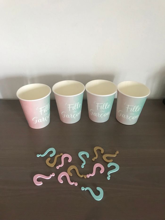 Lot décoration. Une banderole, 4 gobelet, et deco de table ou autres.