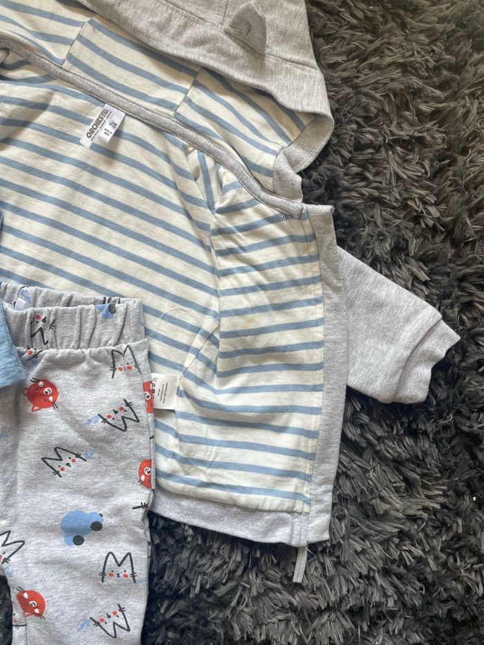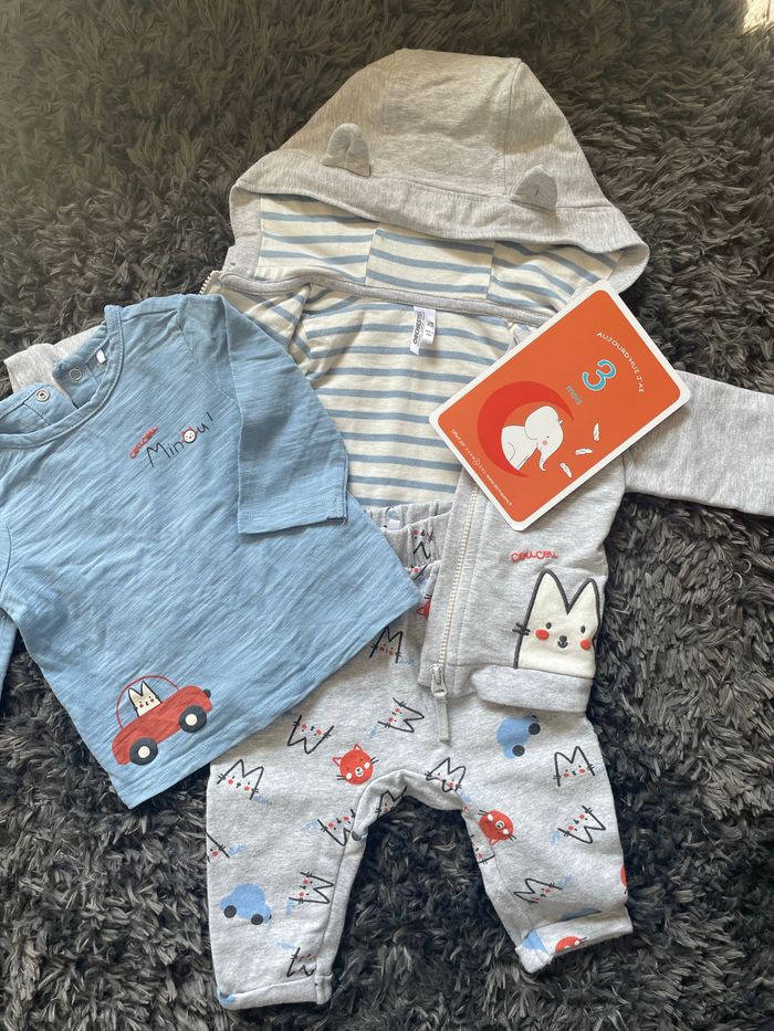 Veste à capuche petite tache à l’intérieur, pantalon tee shirt manche longue ouverture arrière