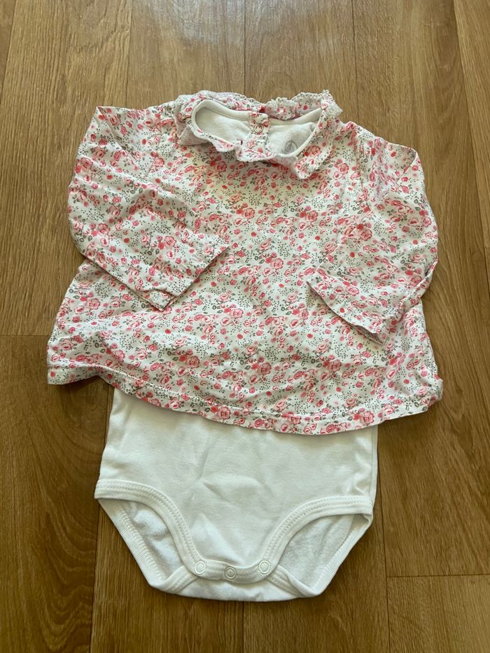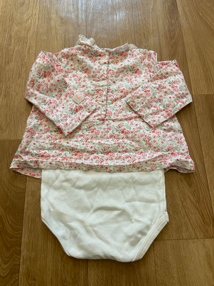 Je vends cette blouse avec body intégré pour fille Motifs fleuris Rose et blanc Coton 6M