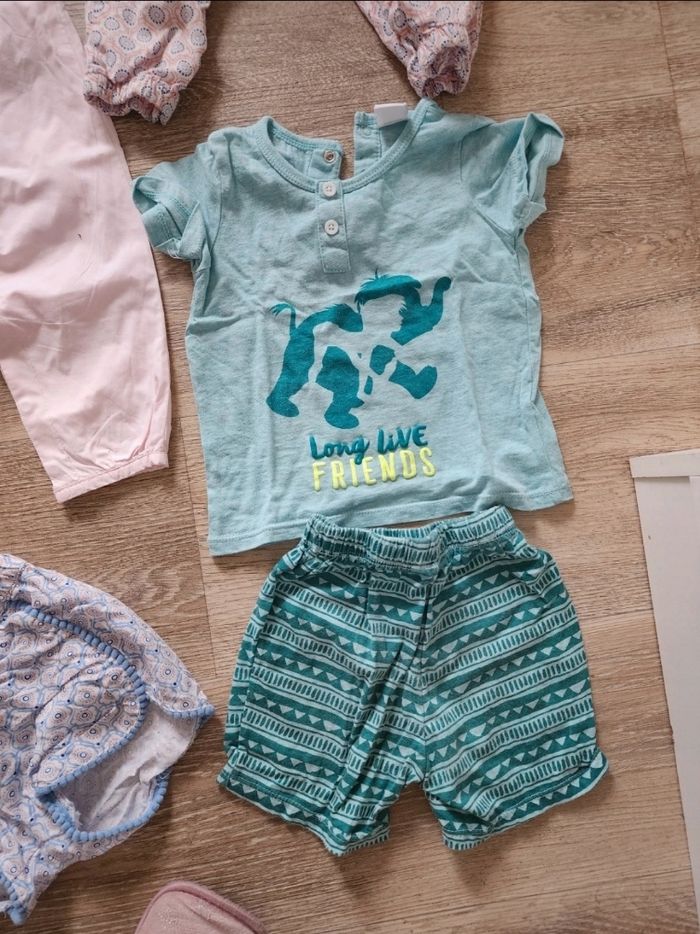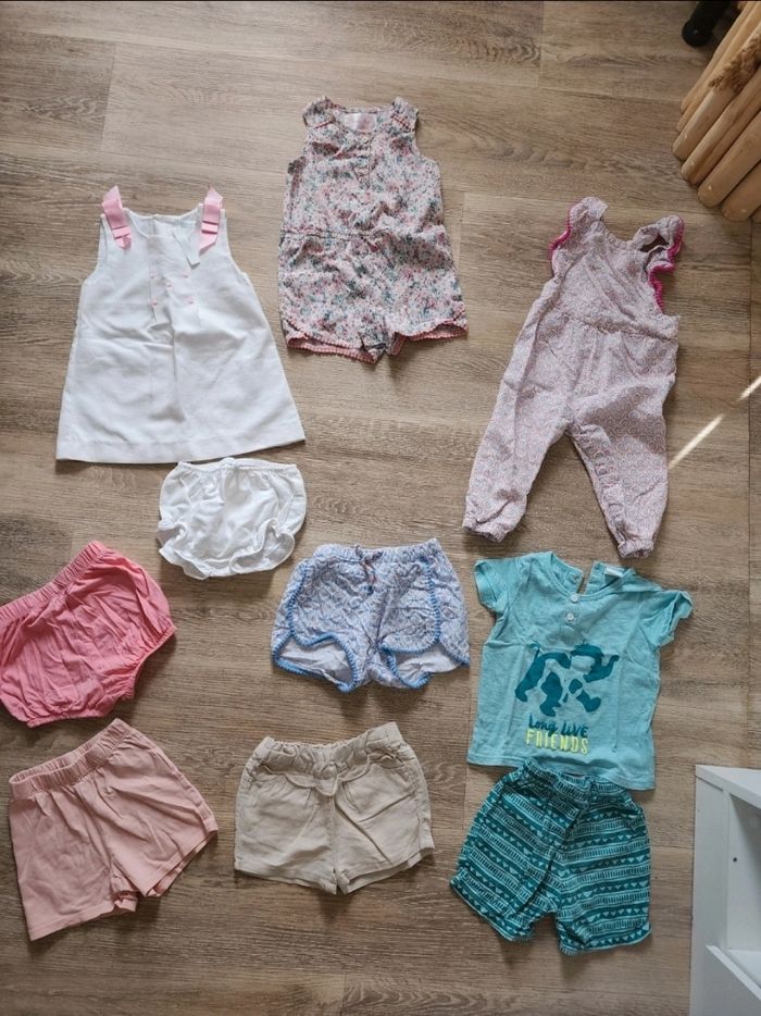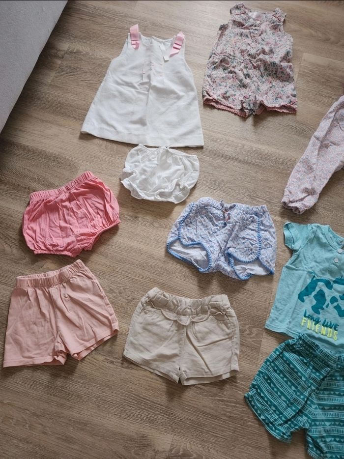 1 combi pantalon 1 combi short 1 robe et sa culotte (robe neuve avec etiquette) 4 short 1 pyjama été Plusieurs marques Le tout quasi pas porté