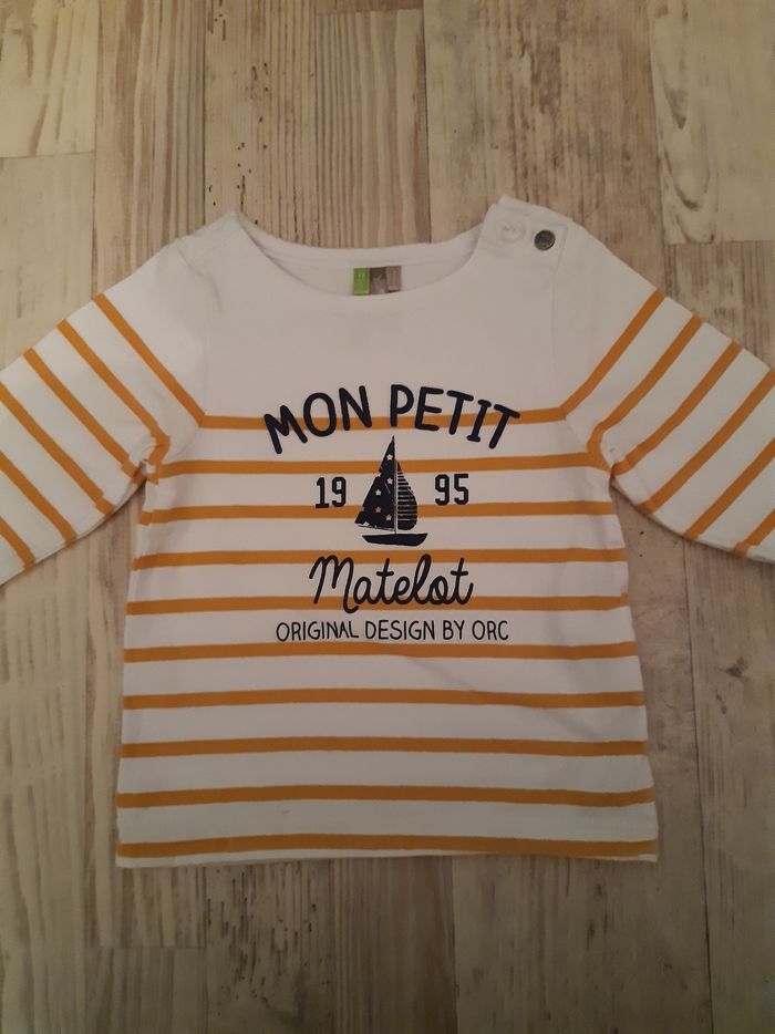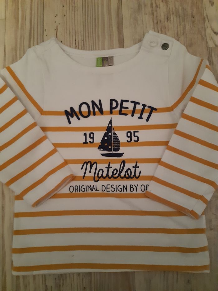 T shirt manches longues marinière orchestra Mon petit matelot bébé garçon Rayures jaunes moutarde 12 mois Très bon état