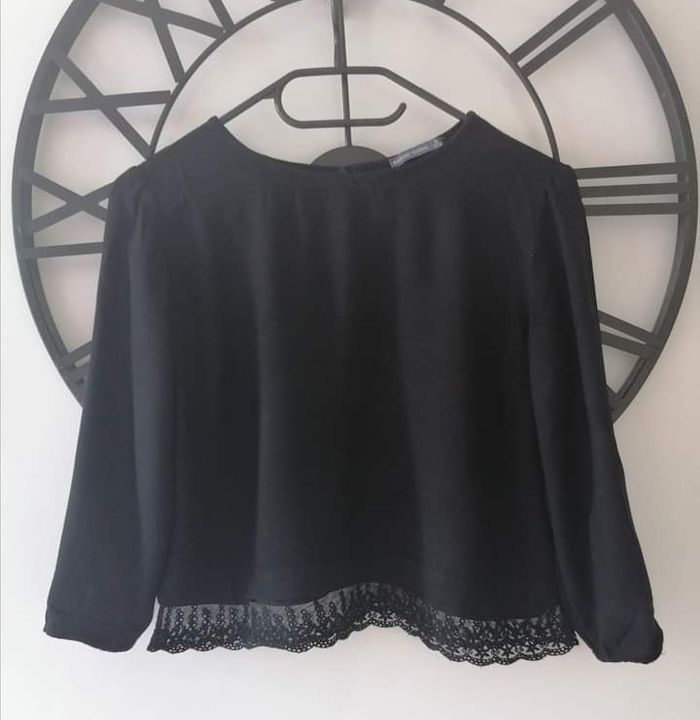 Blouse noire avec dentelle en bas Légèrement ouvert au dos Marque Bershka Taille XS Très bon état