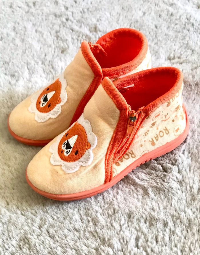 Chaussons montants Couleurs orange et jaune pâle Fermeture éclair aux chevilles