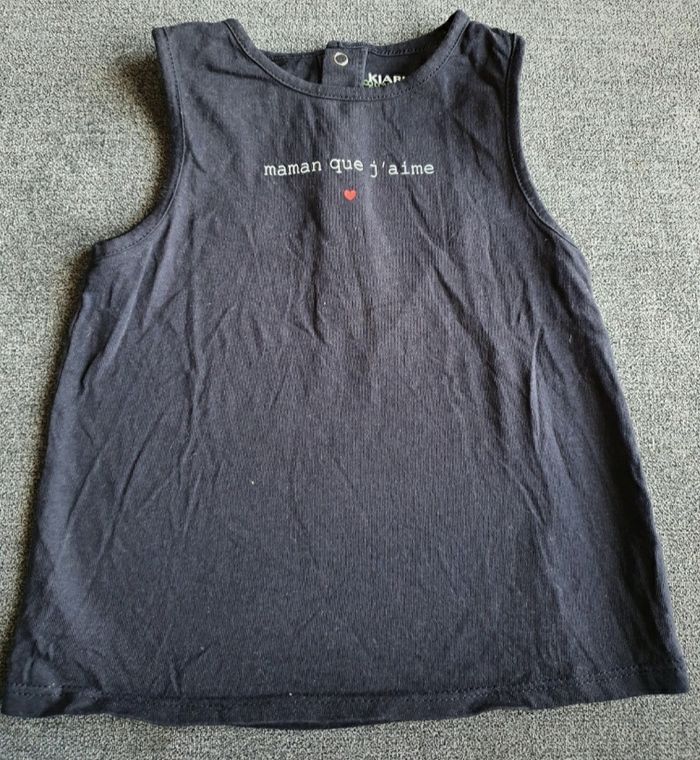 A vendre tee shirt, inscription "maman que j'aime". Taille 24 mois. Marque Kiabi. En très bon état. N'hésitez pas à jeter un coup d'œil sur mon dressing (d'autres vêtements en vente). Une réduction dès 2 articles achetés !