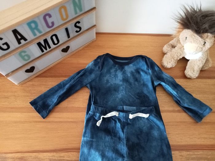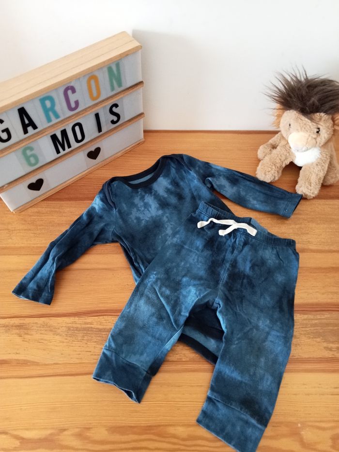Joli ensemble body manche longue et pantalon Taille 6/12 mois mais taille 6 mois me semble plus approprié Très bon état Marque baby gap